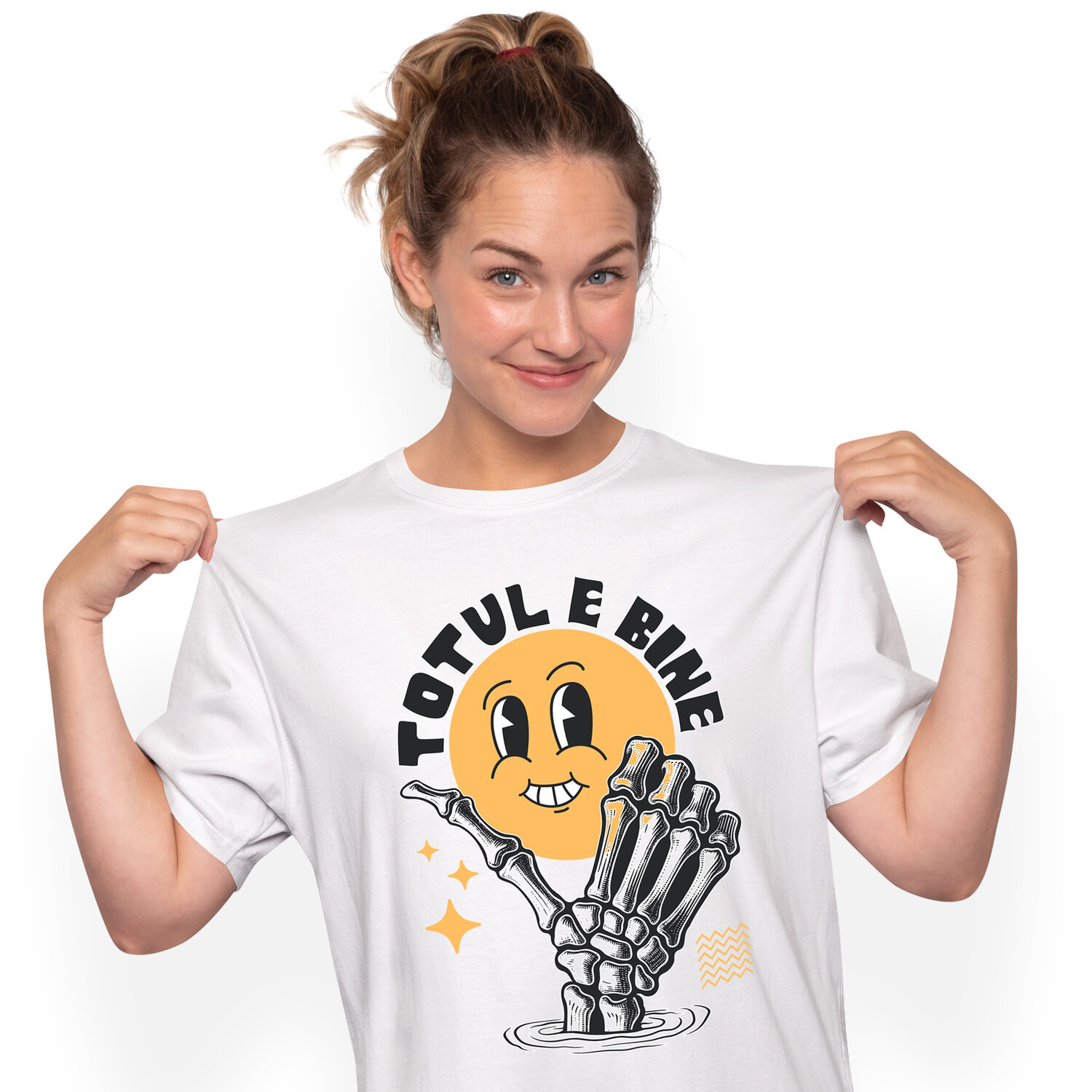 Tricou Femei cu Smiley Face Vesel Mana Umana Schelete Mesaj Inspirational cu imprimeu pe Fata, 100% Bumbac, Alb, S