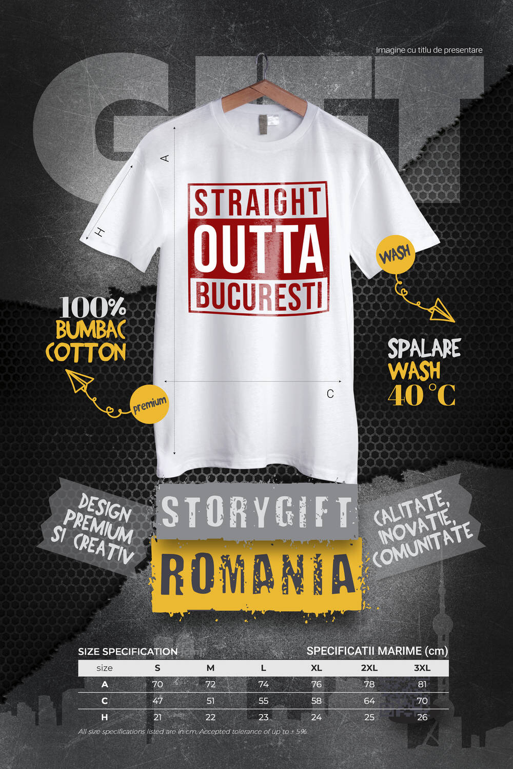 Tricou Barbati cu Text Haios Design In Limba Engleza Bucuresti Romania cu imprimeu pe Fata, 100% Bumbac, Alb, L