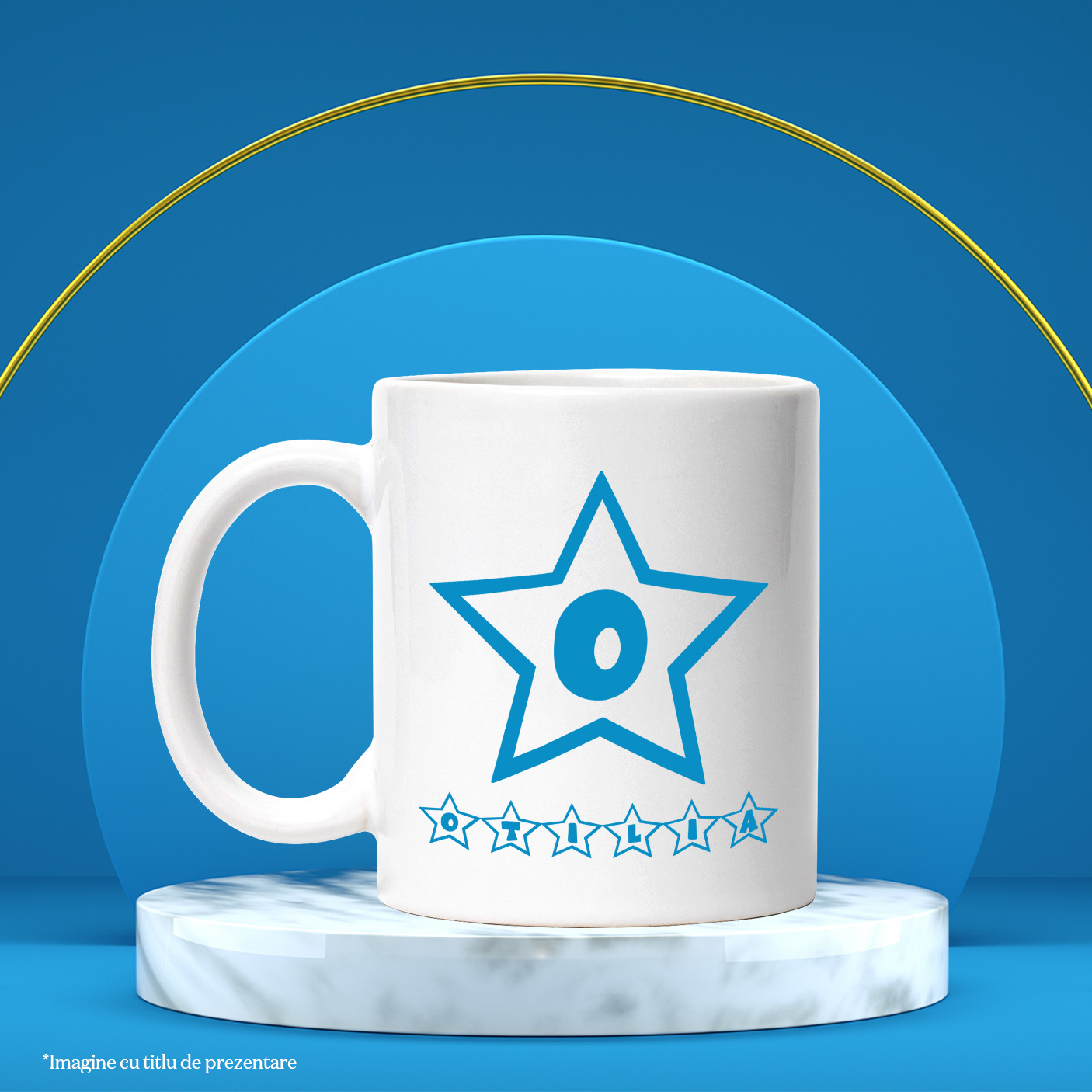 Cana Iubitorii De Stele Michellin, Text Nume Personalizat, Copii, Culoare Albastru, Cu Litera, 330ML, Ceramica, Cu Maner si Interior Alb