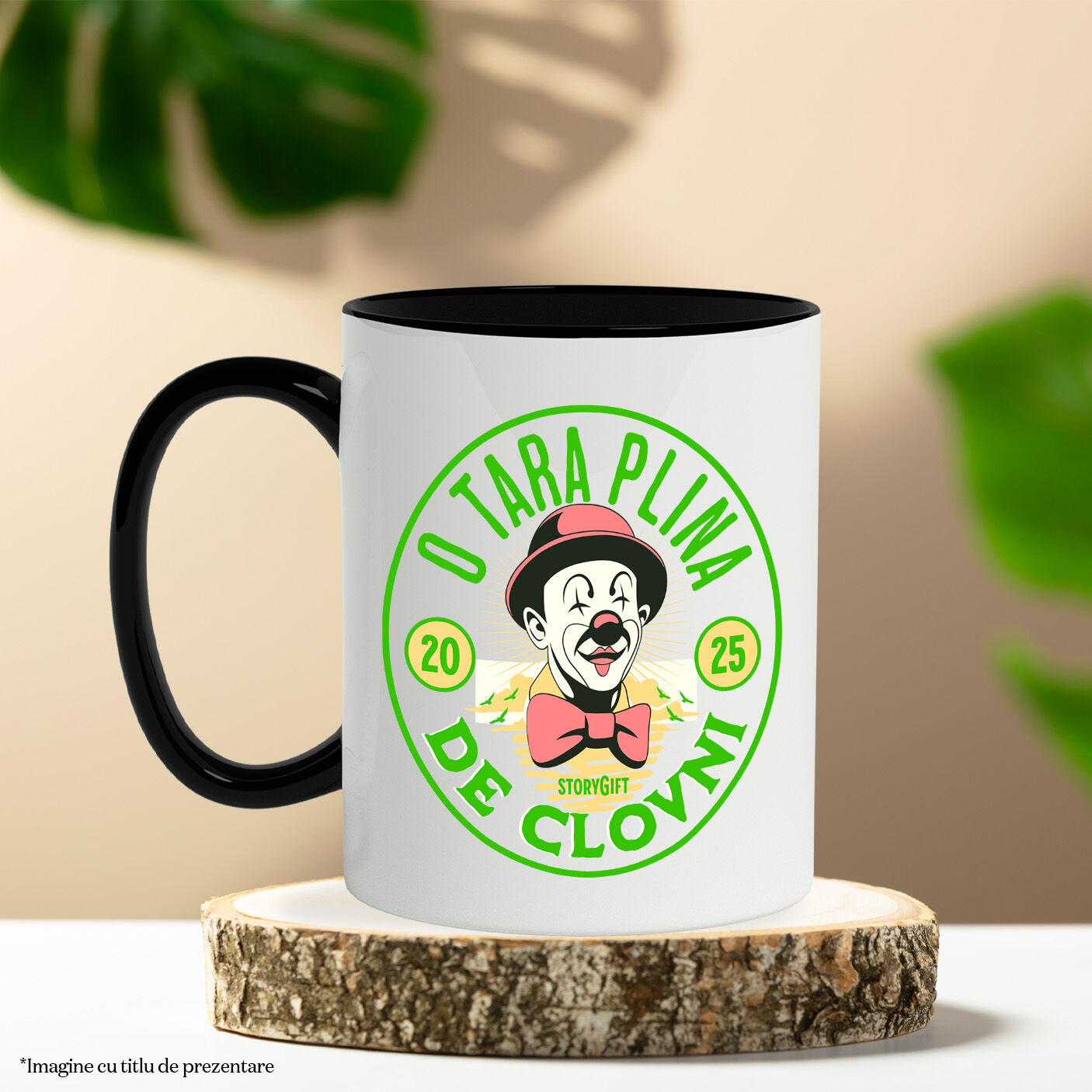 Cana Personalizata cu Cerc Stil Moneda Clovn Cu papion Si Palarie Rosii Gluma Sarcastic Copii, Ceramica, 330ML, cu Maner Negru