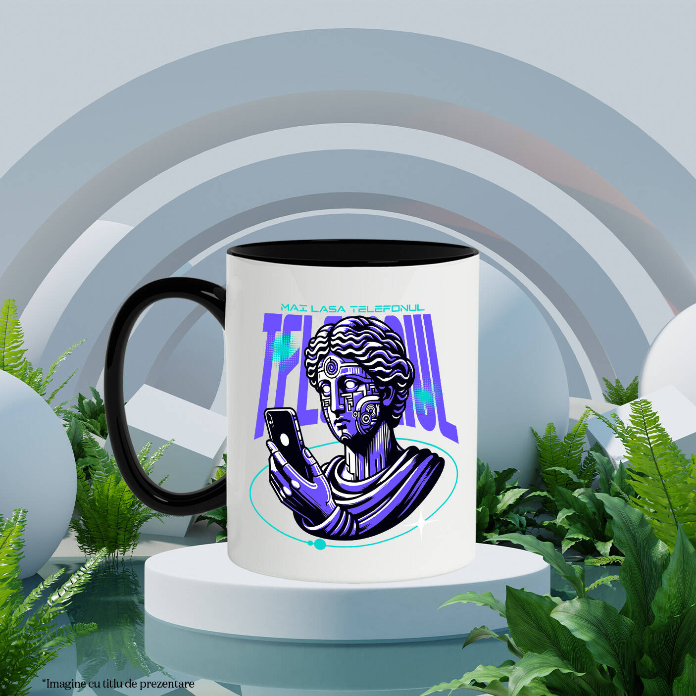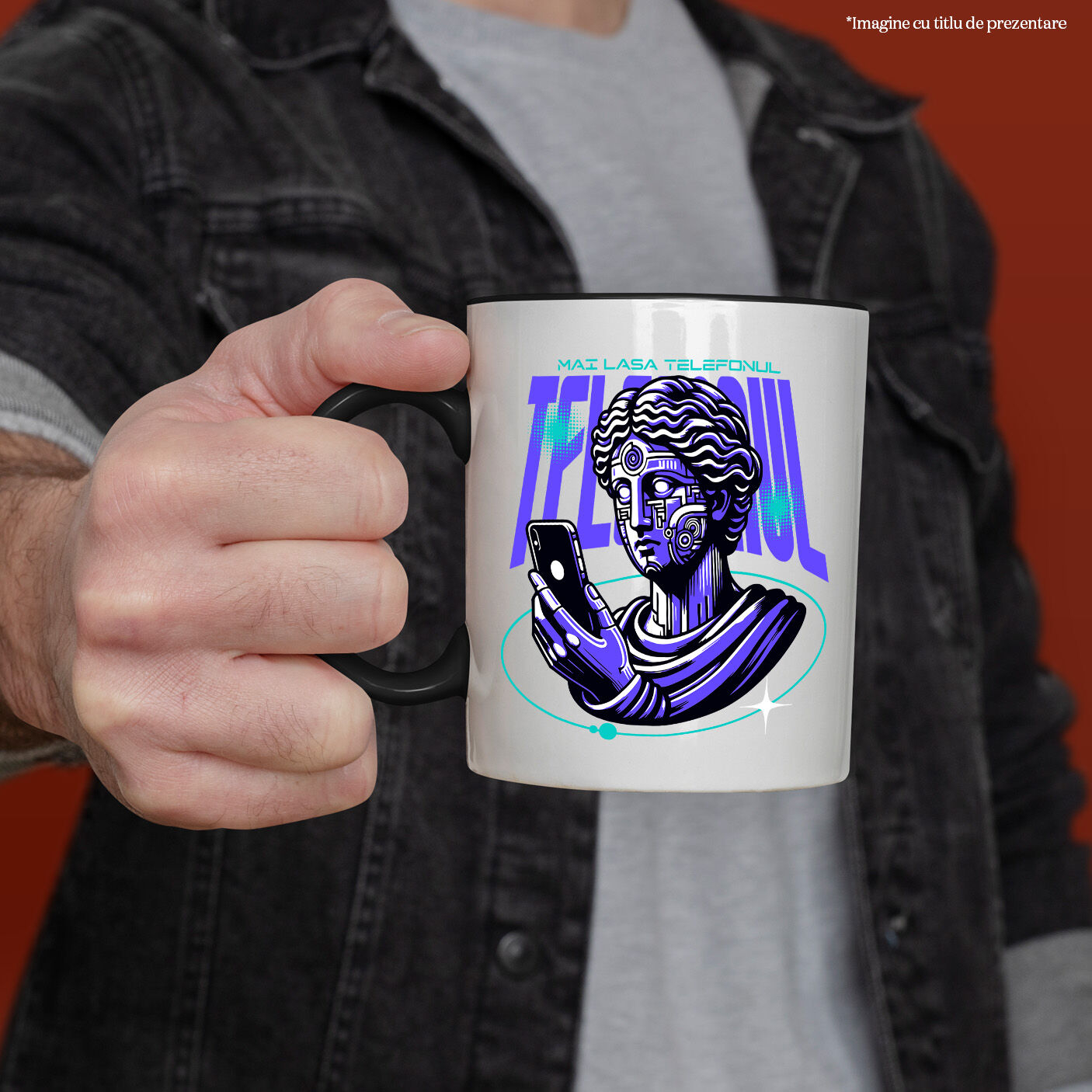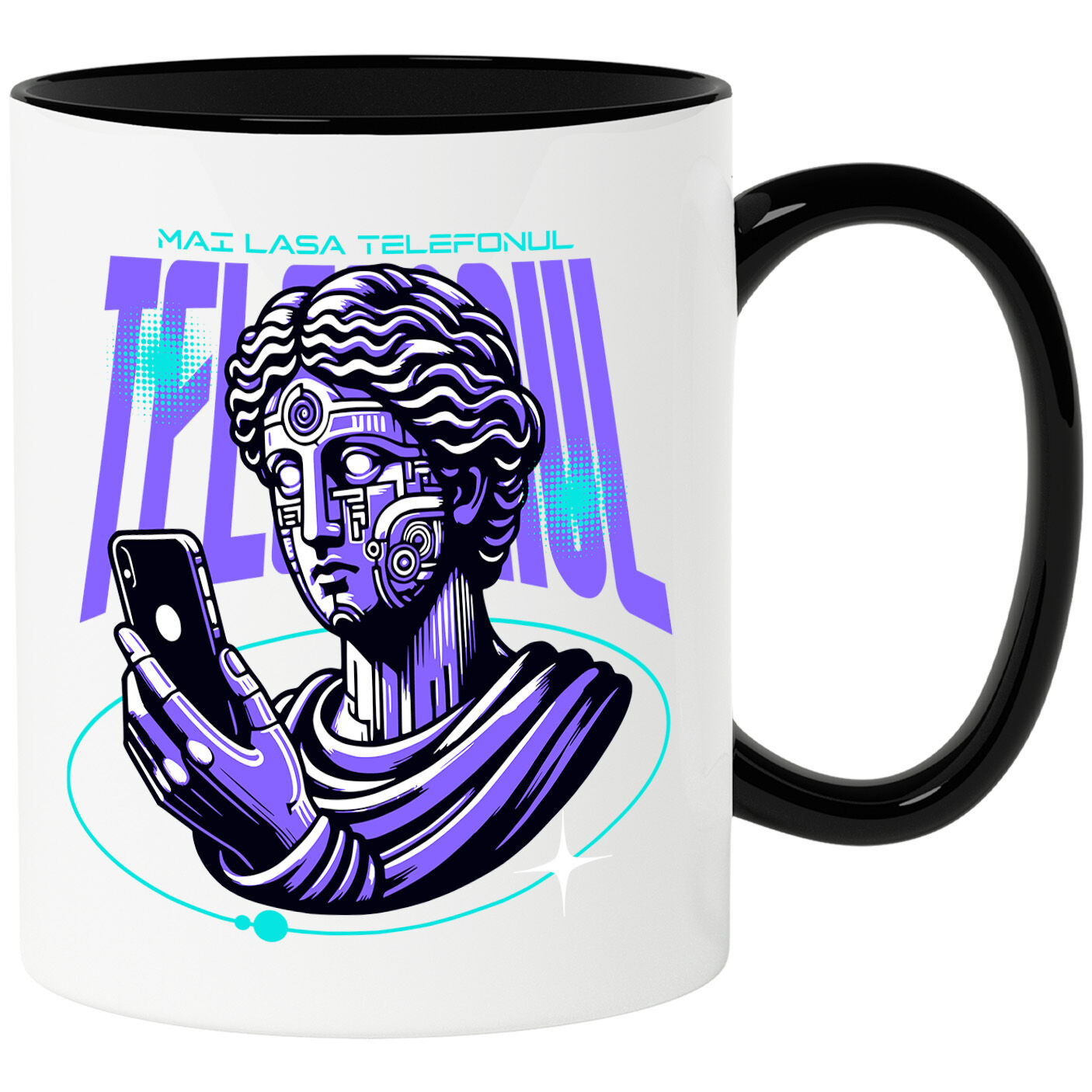 Cana Personalizata cu Chip Uman Statuie Greceasca Telefon Robot Copii Digitalizare , Ceramica, 330ML, cu Maner Negru