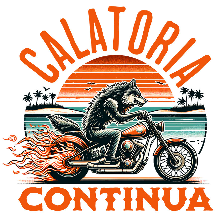 Sticker Personalizat cu Lup Furios Pe Motocicleta Puternica flacari Calatorie Aventura cu Margini Albe, PVC Vinyl 10 cm