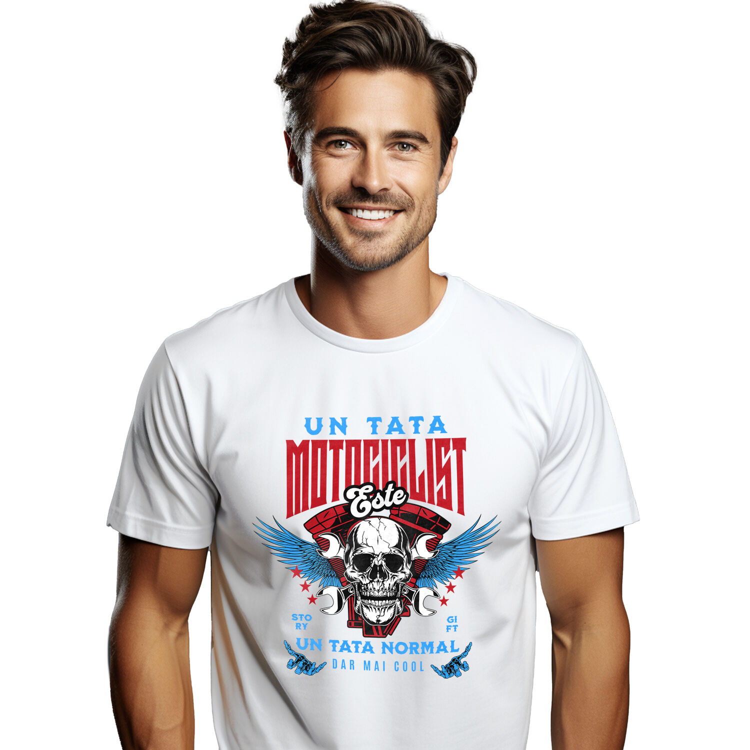 Tricou Barbati cu Craniu Uman Horror Cu Aripi De Inger Chei Mecanic Familie Tata Pasiune Motocicleta cu imprimeu pe Fata, 100% Bumbac, Alb, S