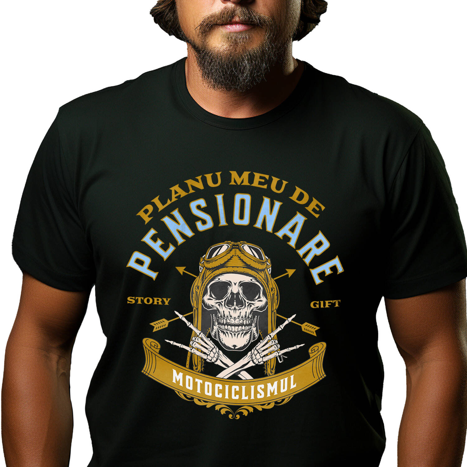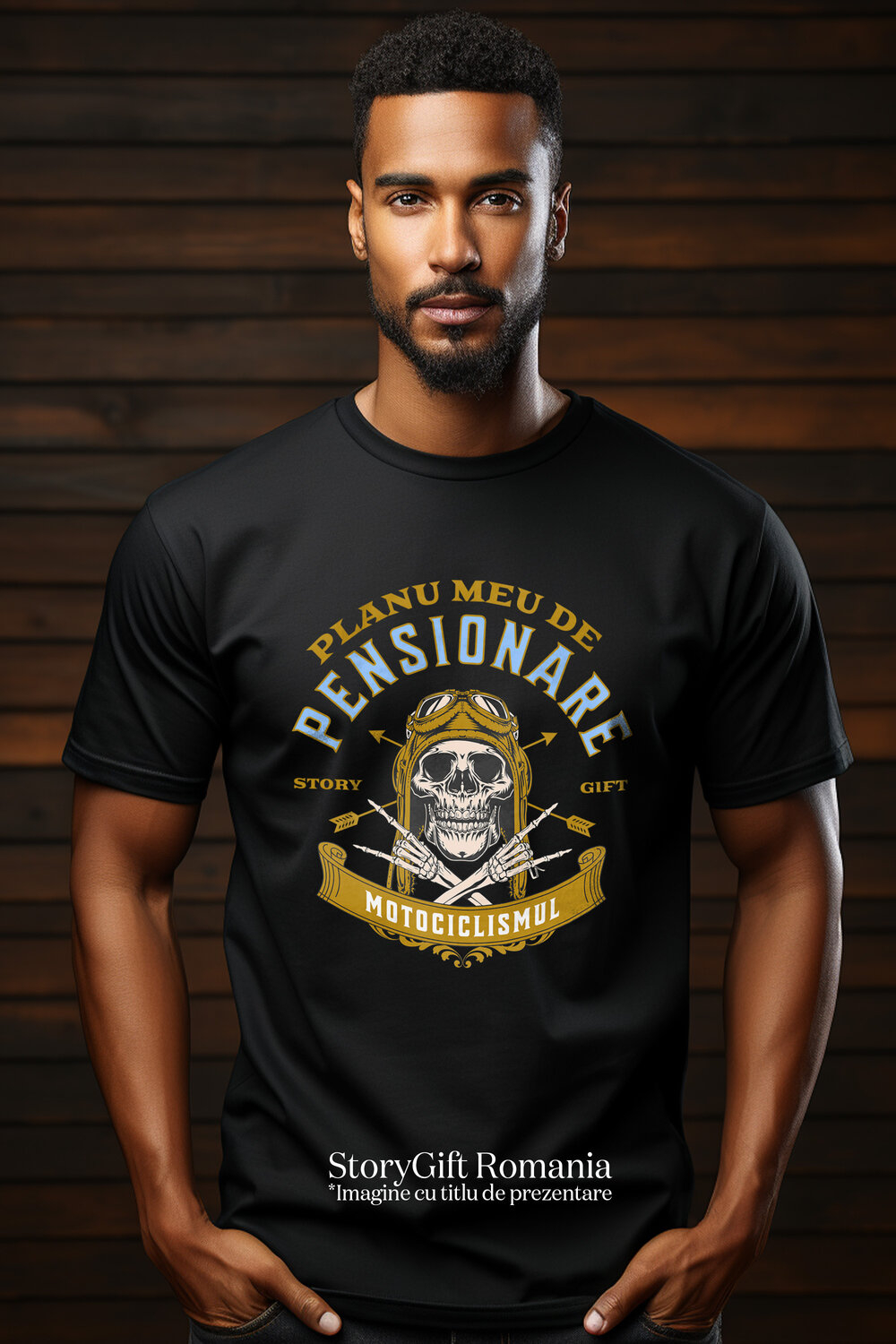 Tricou Barbati cu Craniu Uman Schelete Cu Palarie De protectie Motor Pasiune Hobby cu imprimeu pe Fata, 100% Bumbac, Negru, L