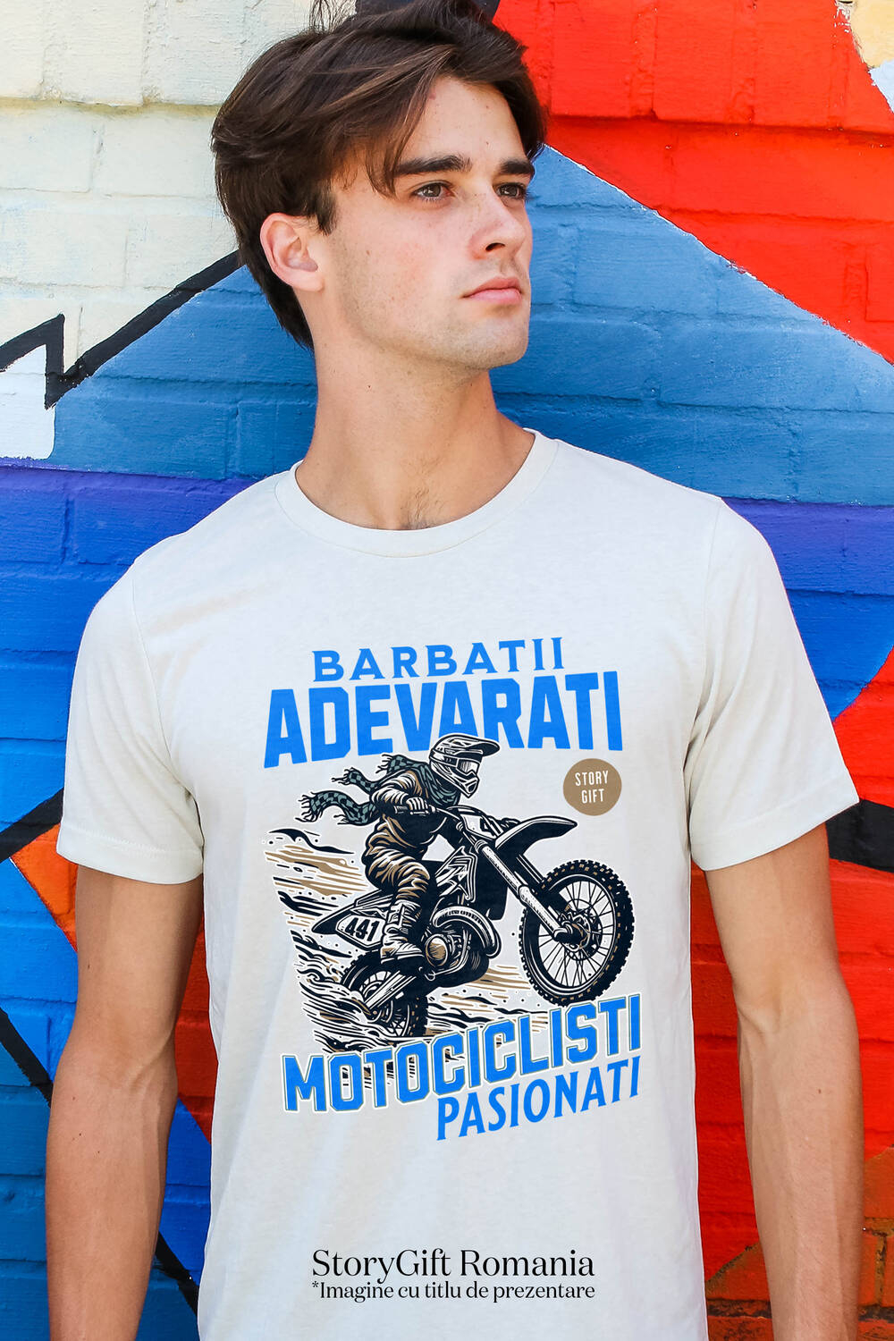 Tricou Barbati cu Motociclist Curse Cu Casca Si esarfa In vant Sport Pasiune Motociclist Adevarat cu imprimeu pe Fata, 100% Bumbac, Alb, M