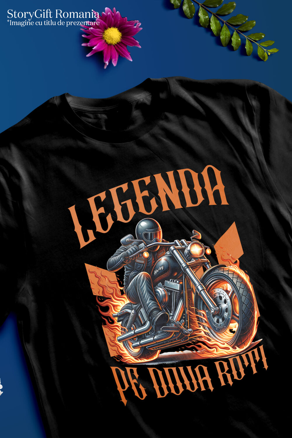 Tricou Barbati cu Motociclist In Tinuta De Piele Protectie Flacari Pasiune Copii cu imprimeu pe Fata, 100% Bumbac, Negru, L
