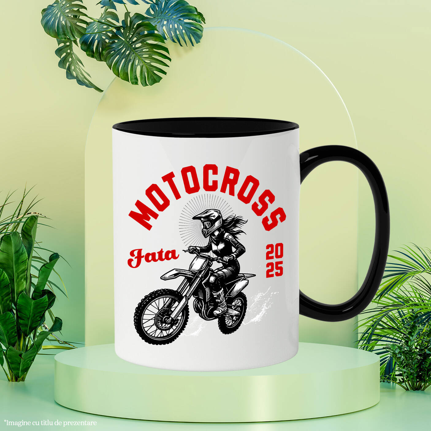 Cana Personalizata cu Fata Pasionata DE Motocicleta Cursa Motocross Sport Noroi , Ceramica, 330ML, cu Maner Negru