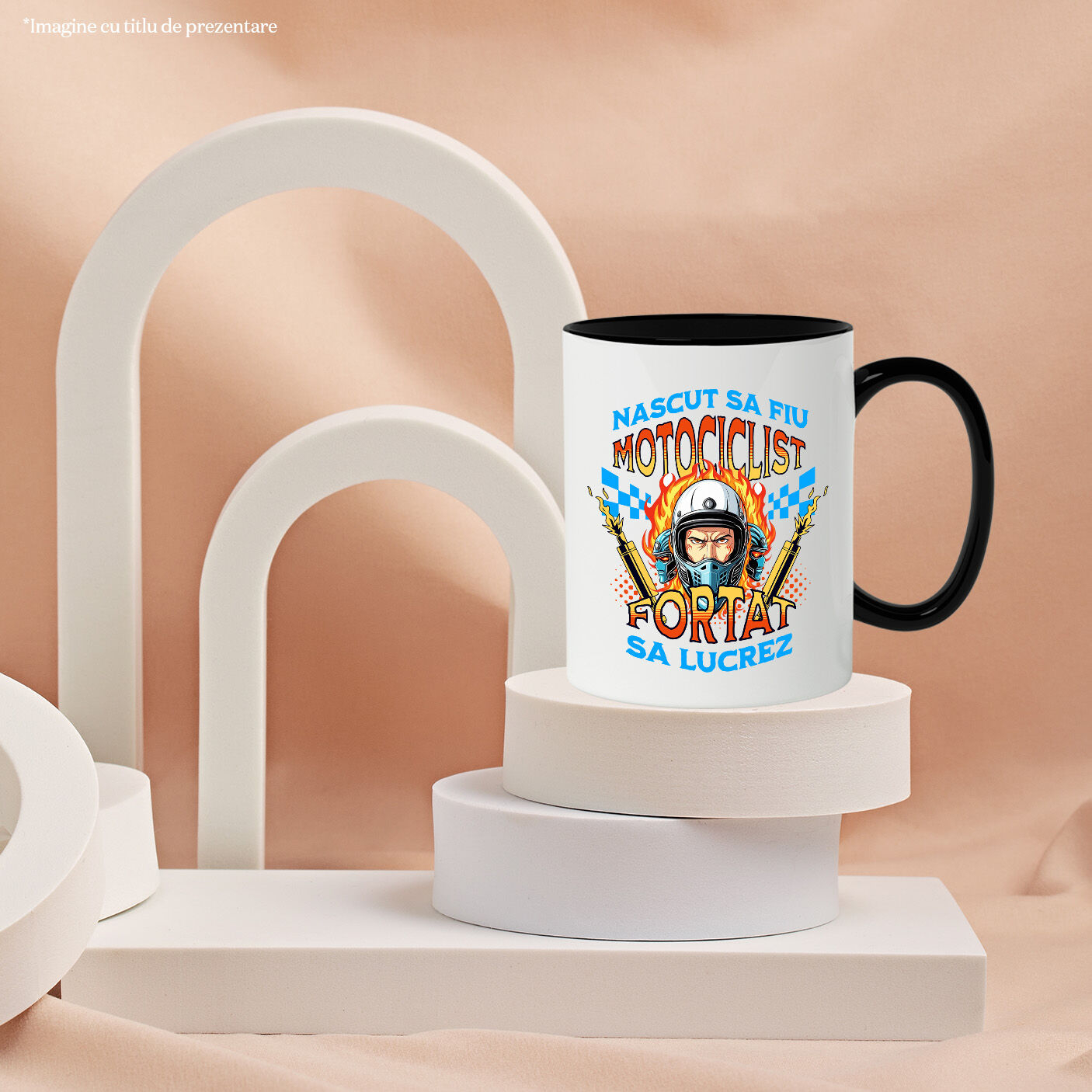 Cana Personalizata cu Om Cu Casca Protectie Motor Tobe Esapament Flacari pasiune, Ceramica, 330ML, cu Maner Negru