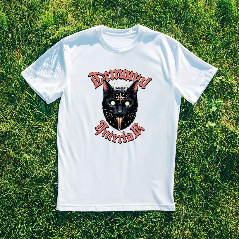 Tricou Barbati cu Pisica Neagra Stil iluminati Hallowen, Satana, Mustati Lungi, Iubitorii De Motani cu imprimeu pe Fata, 100% Bumbac, Alb, M
