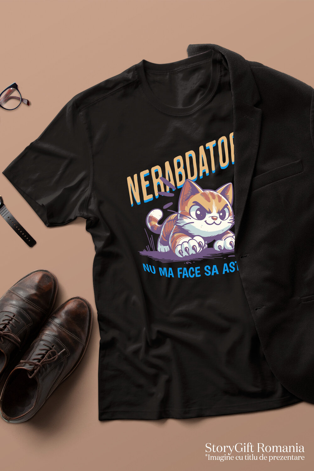 Tricou Barbati cu Pisica Portocalie, Furioasa Cu Gheare , Iubitorii de animale cu imprimeu pe Fata, 100% Bumbac, Negru, L