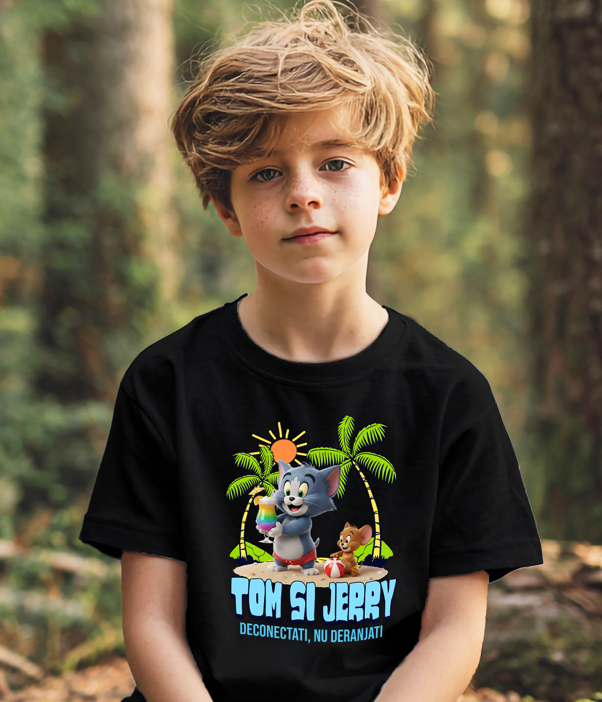 Tricou Copii cu Relaxare la Mare cu Tom and Jerry 100% Bumbac, Negru, 10 Ani