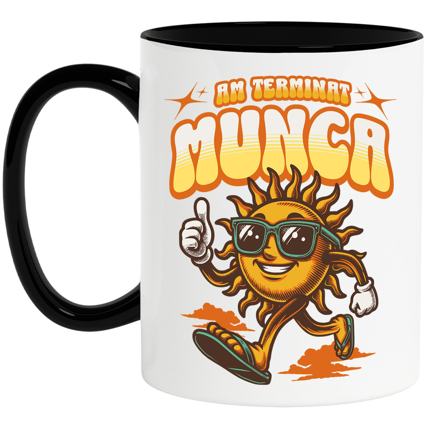Cana Personalizata cu Soare Cu Ochelari Vesel La plaja cu Papuci Copii, Vacanta, Ceramica, 330ML, cu Maner Negru