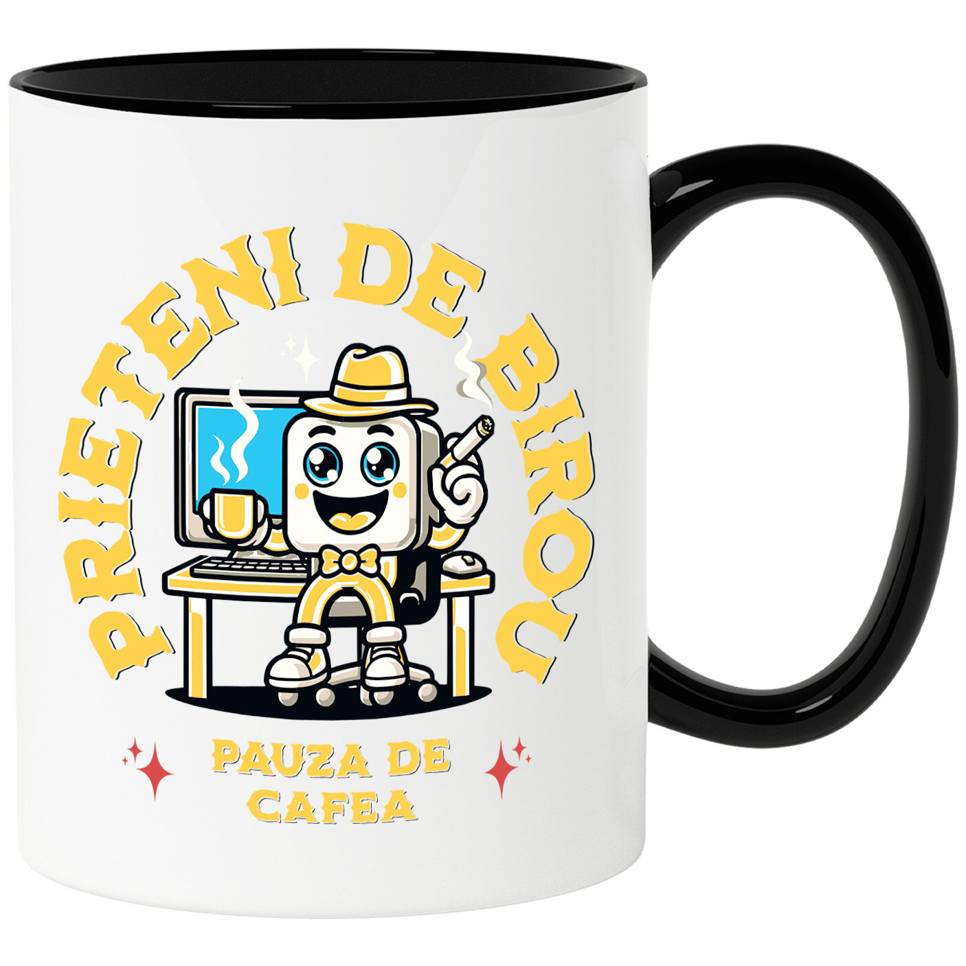 Cana Personalizata cu Animatie sef la Birou Cu Cafea Si Tigara, Munca, Corporatie, Ceramica, 330ML, cu Maner Negru