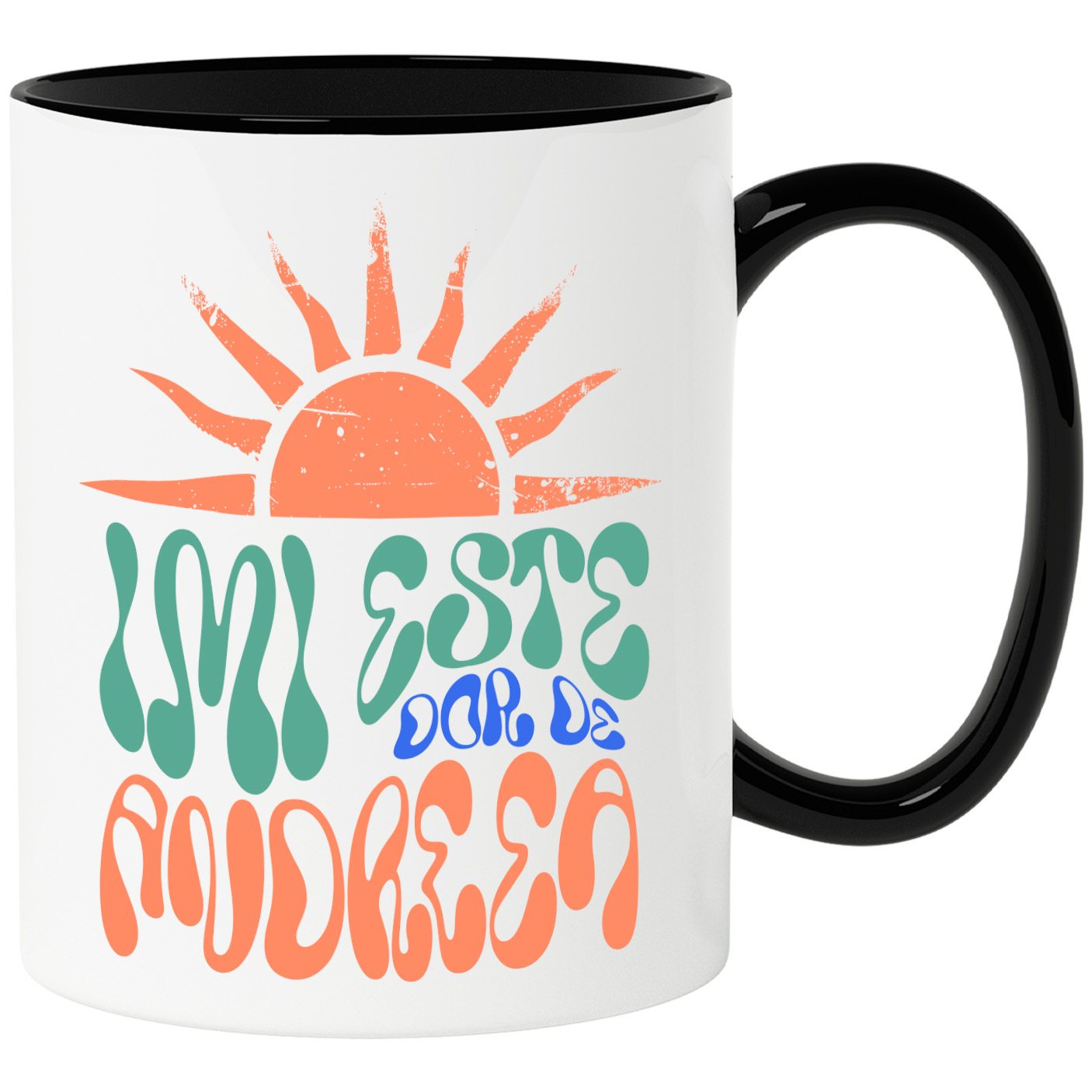 Cana Personalizata cu Soare stralucitor Taiat Design Retro, Iubire Dragoste, Ceramica, 330ML, cu Maner Negru