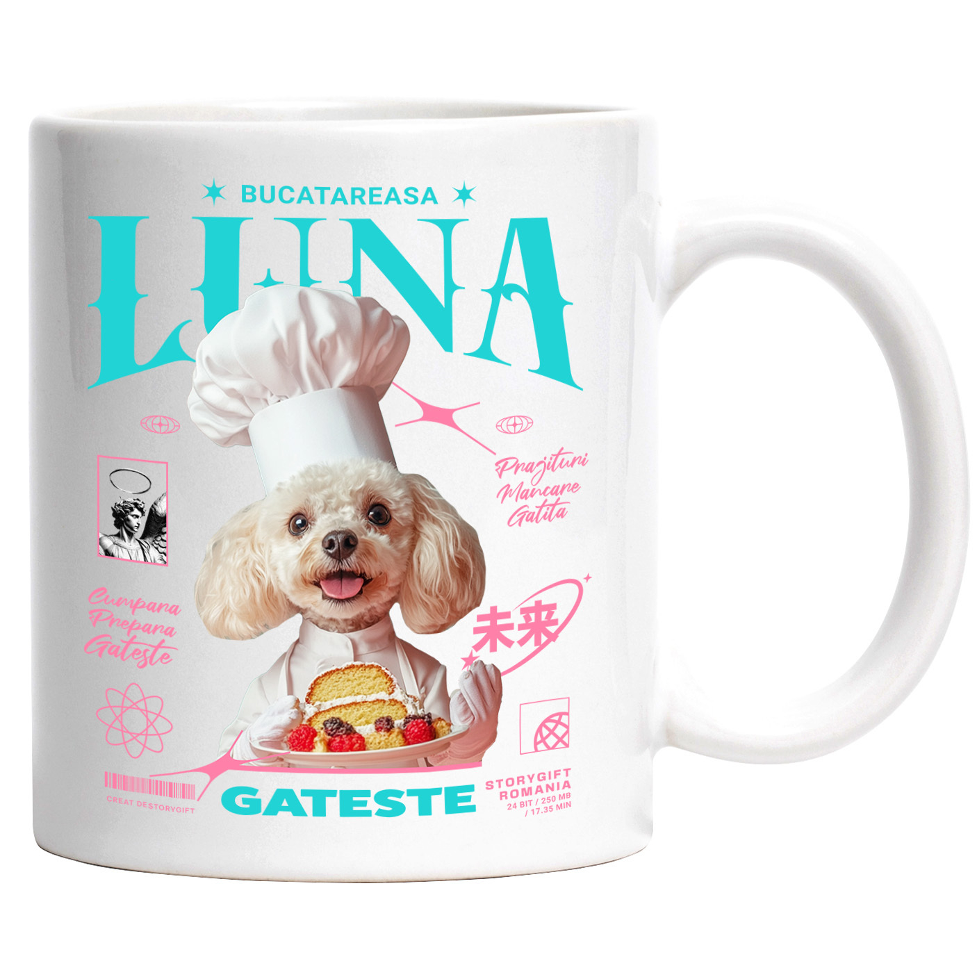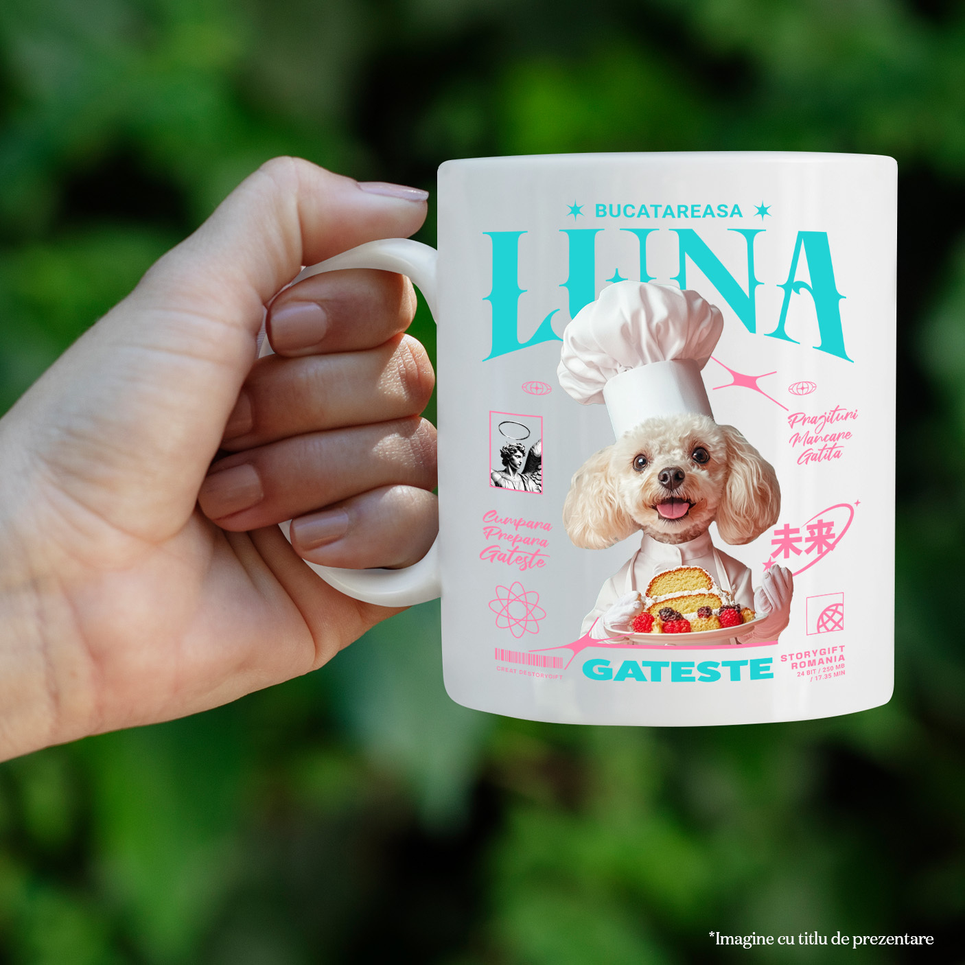 Cana cu Animal Bucatar, Cofetar, Patiser, Peronalizata cu Numele si Poza Animalului Tau cu Maner Alb