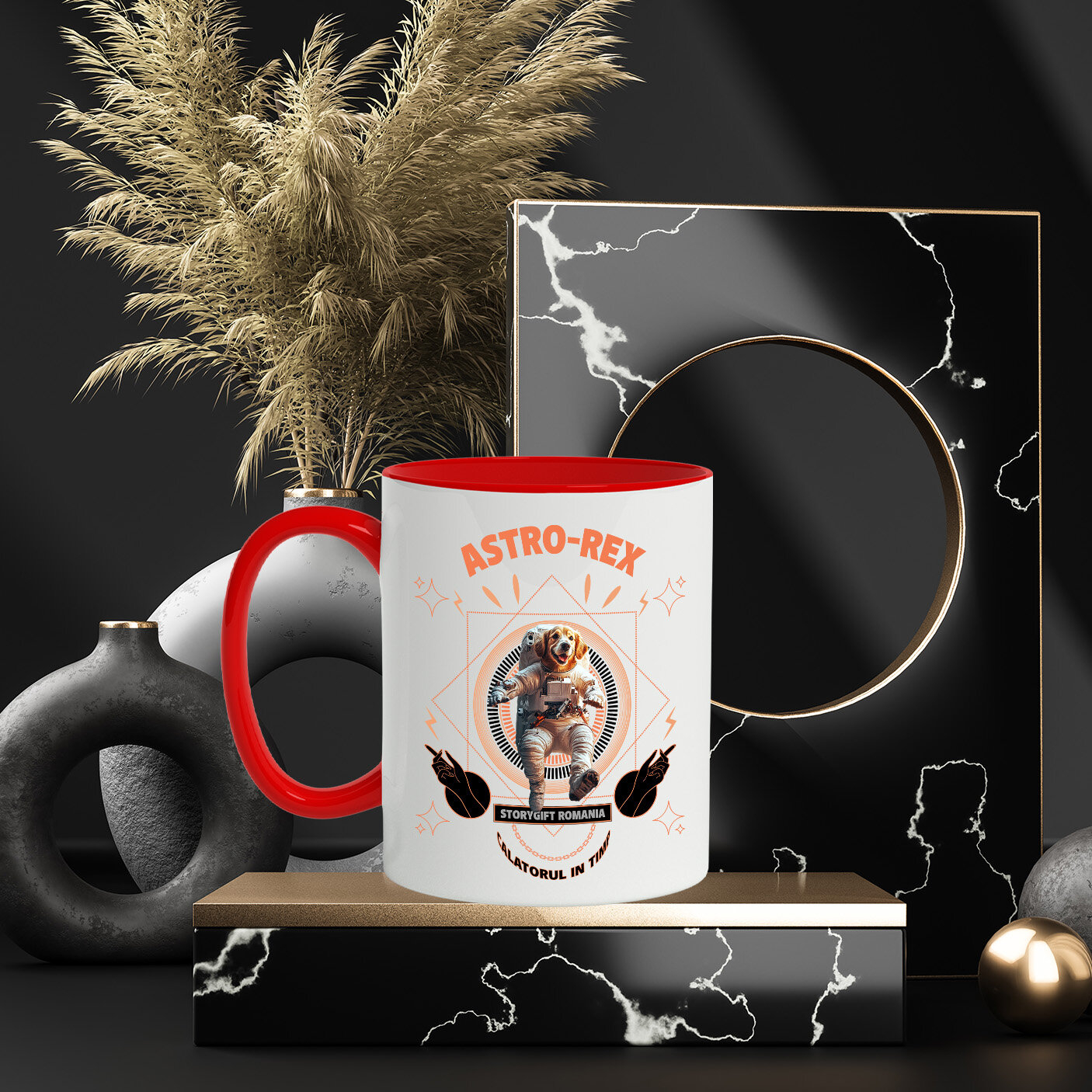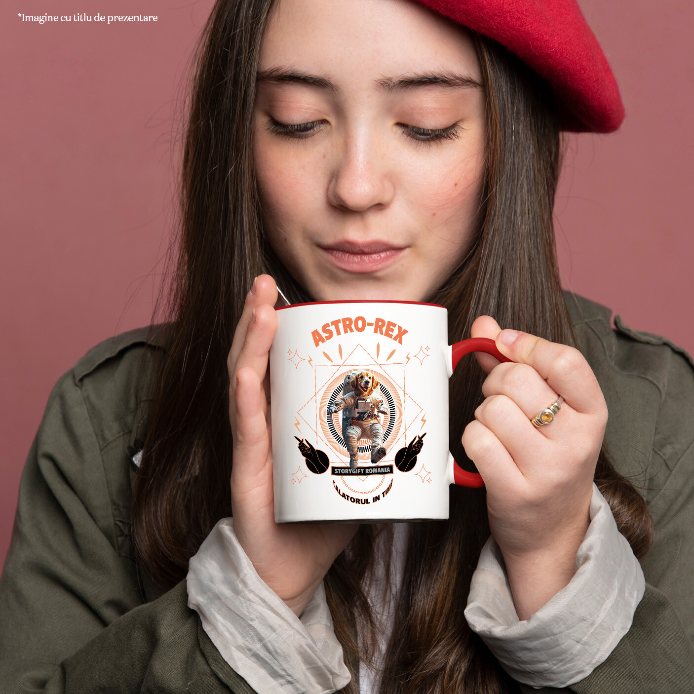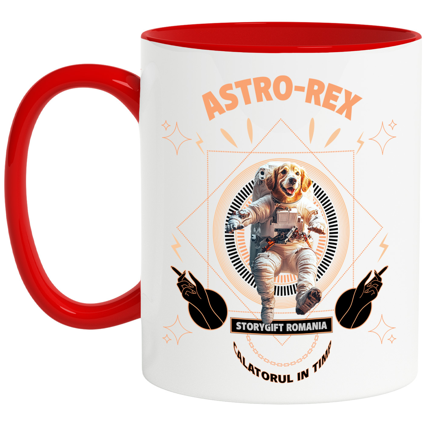 Cana cu Animal In Costum de Astronaut , Peronalizata cu Numele si Poza Animalului Tau cu Maner Rosu