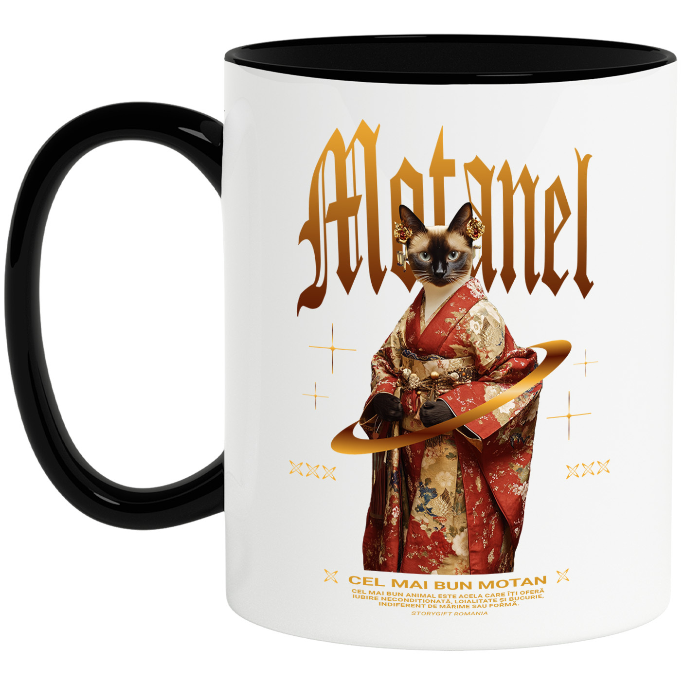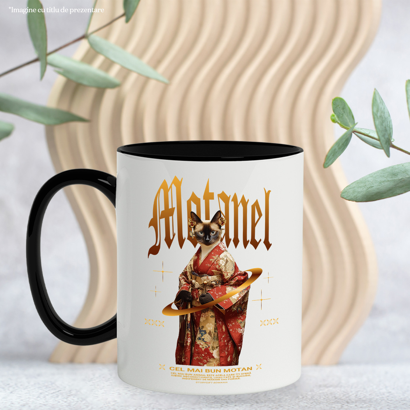 Cana cu Animal In Costum Japonez, Peronalizata cu Numele si Poza Animalului Tau cu Maner Negru