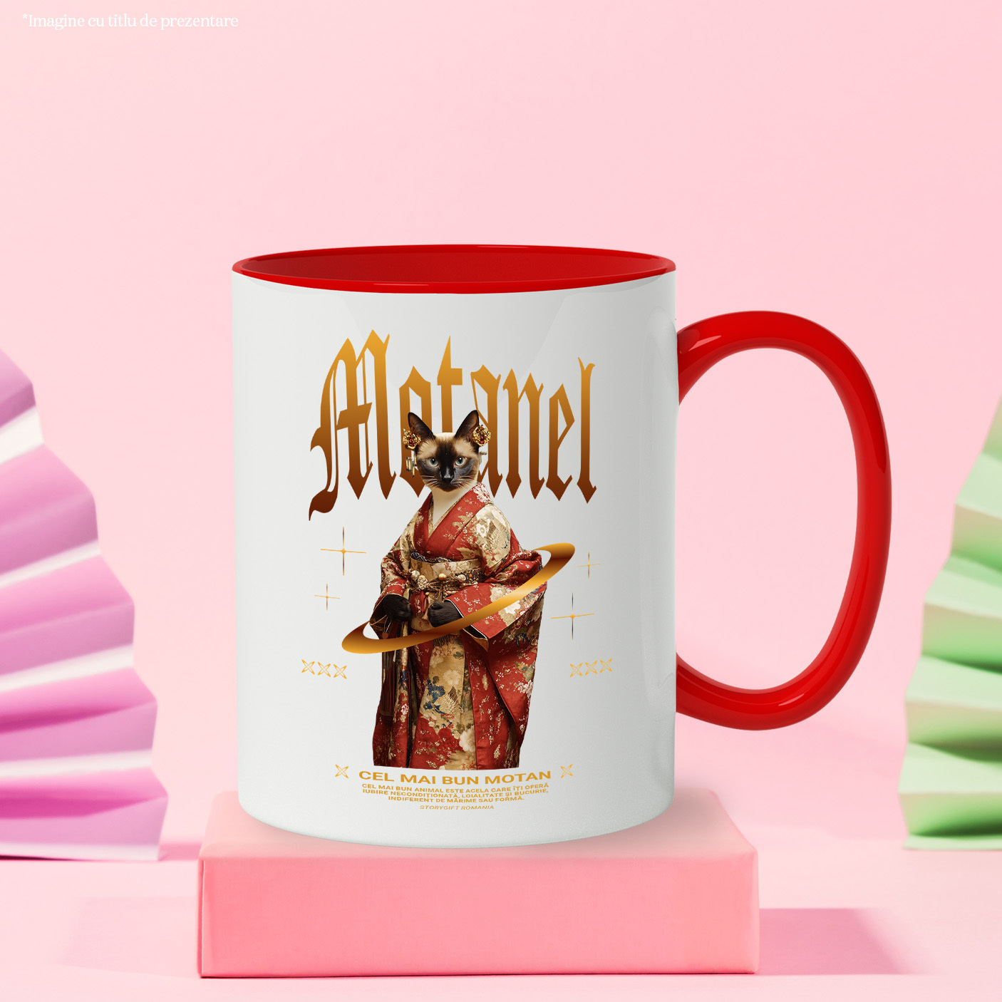 Cana cu Animal In Costum Japonez, Peronalizata cu Numele si Poza Animalului Tau cu Maner Rosu