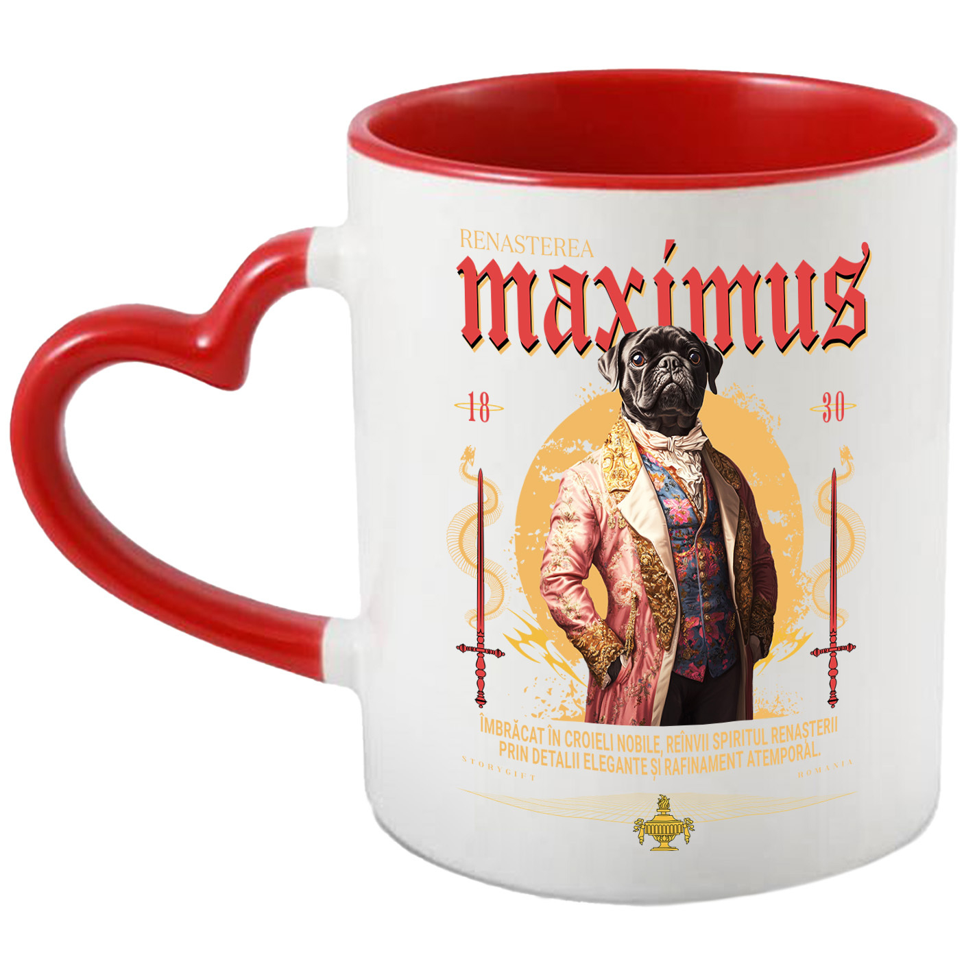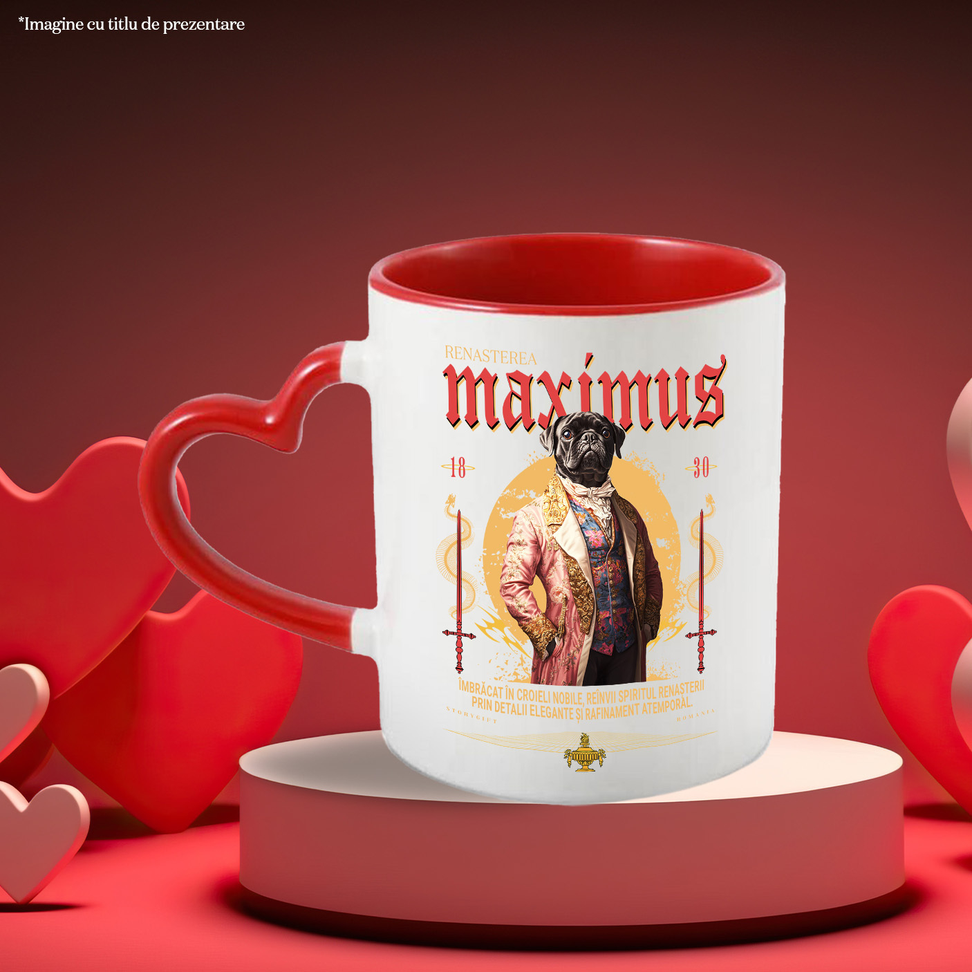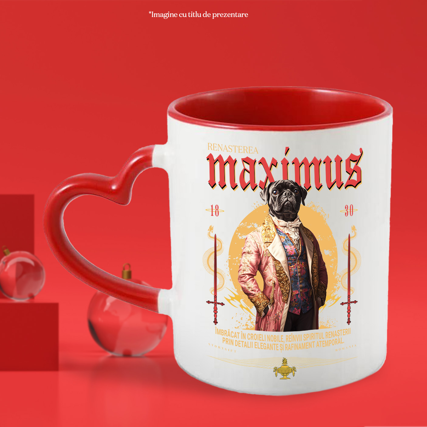 Cana cu Animal In Costum Medieval, Portret, Peronalizata cu Numele si Poza Animalului Tau cu Maner Inima Rosie