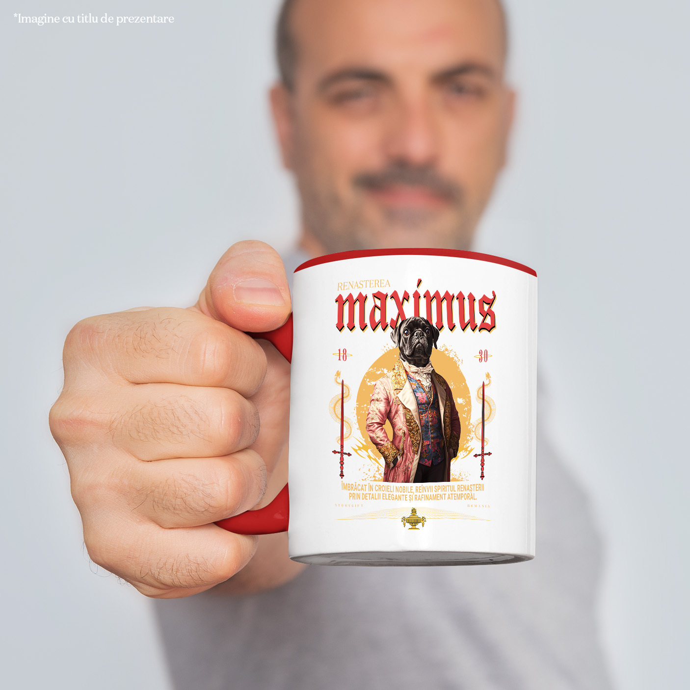 Cana cu Animal In Costum Medieval, Portret, Peronalizata cu Numele si Poza Animalului Tau cu Maner Rosu