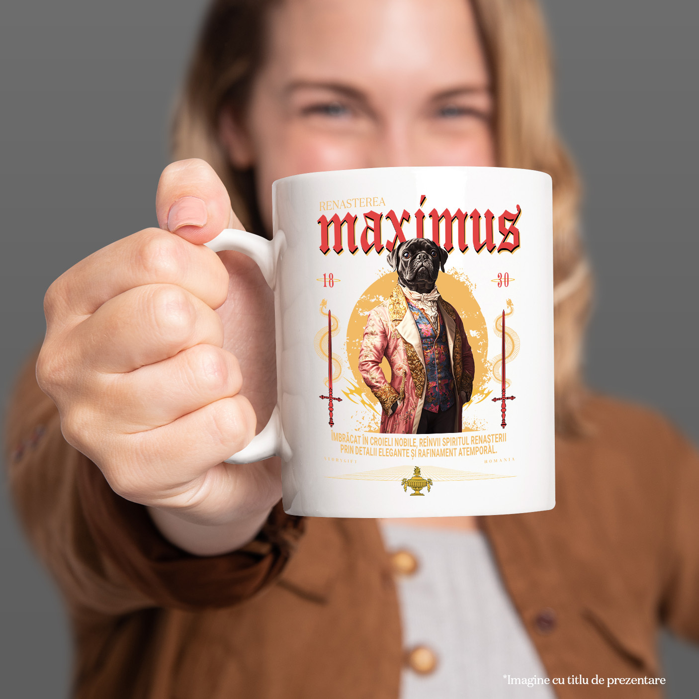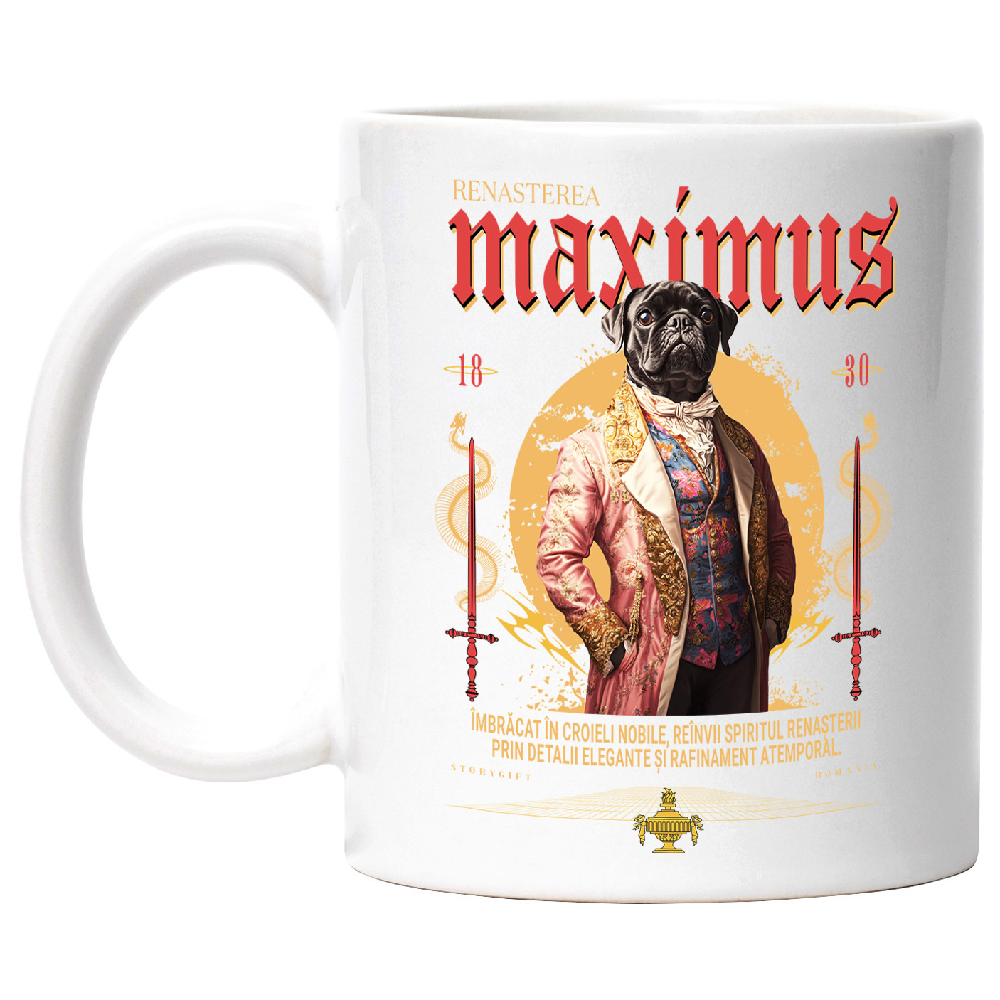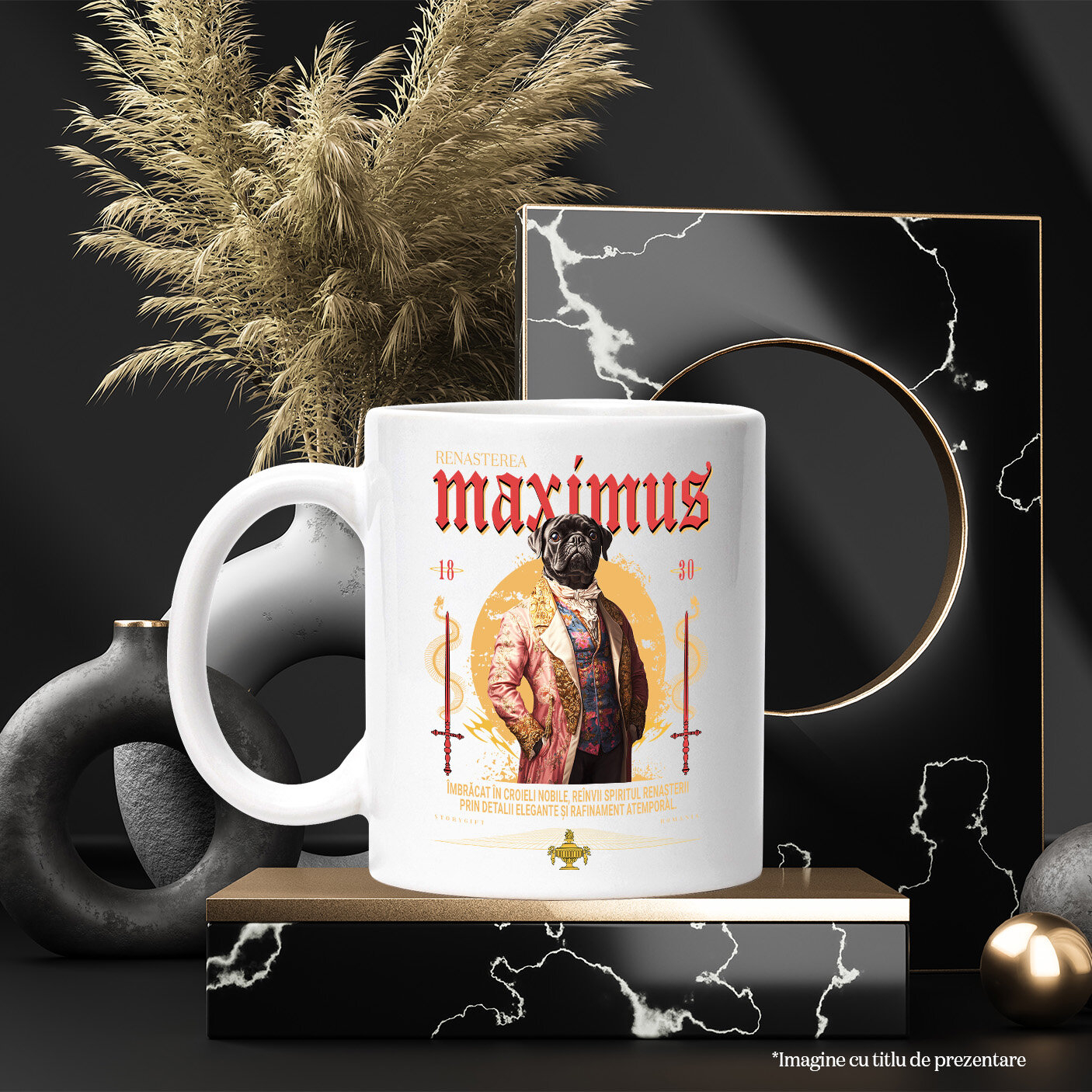 Cana cu Animal In Costum Medieval, Portret, Peronalizata cu Numele si Poza Animalului Tau cu Maner Alb