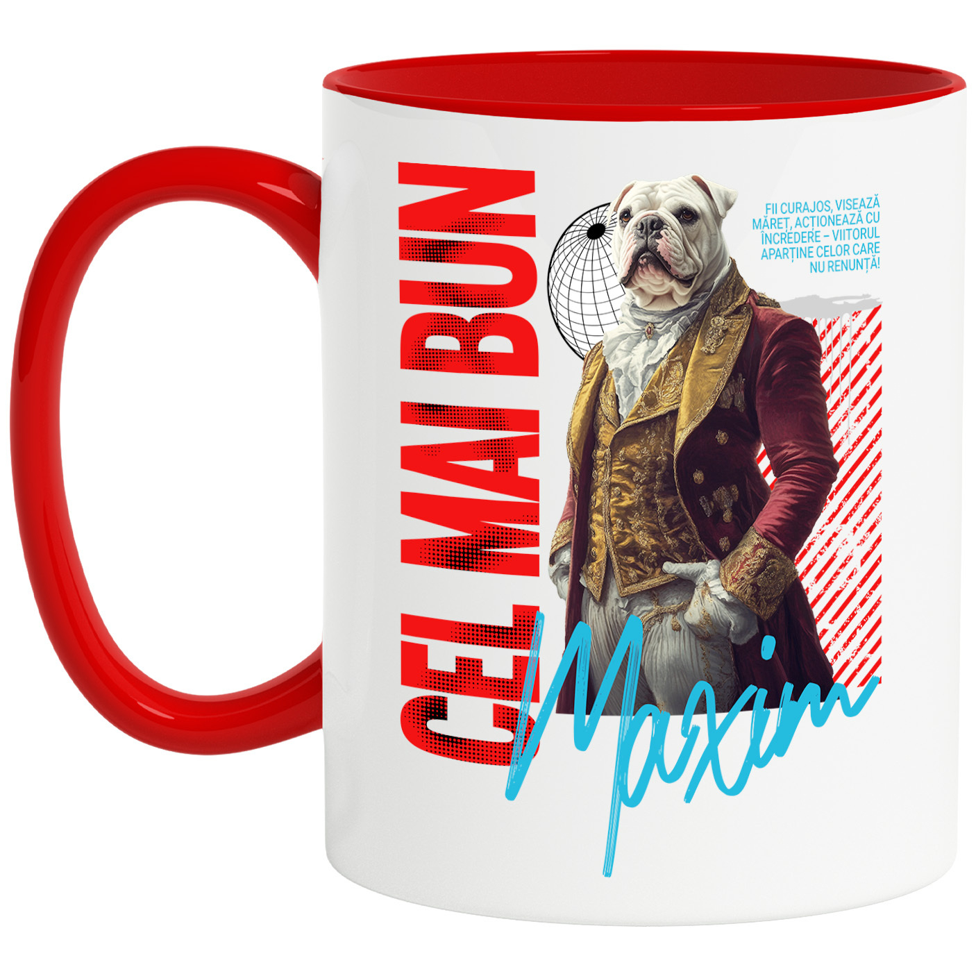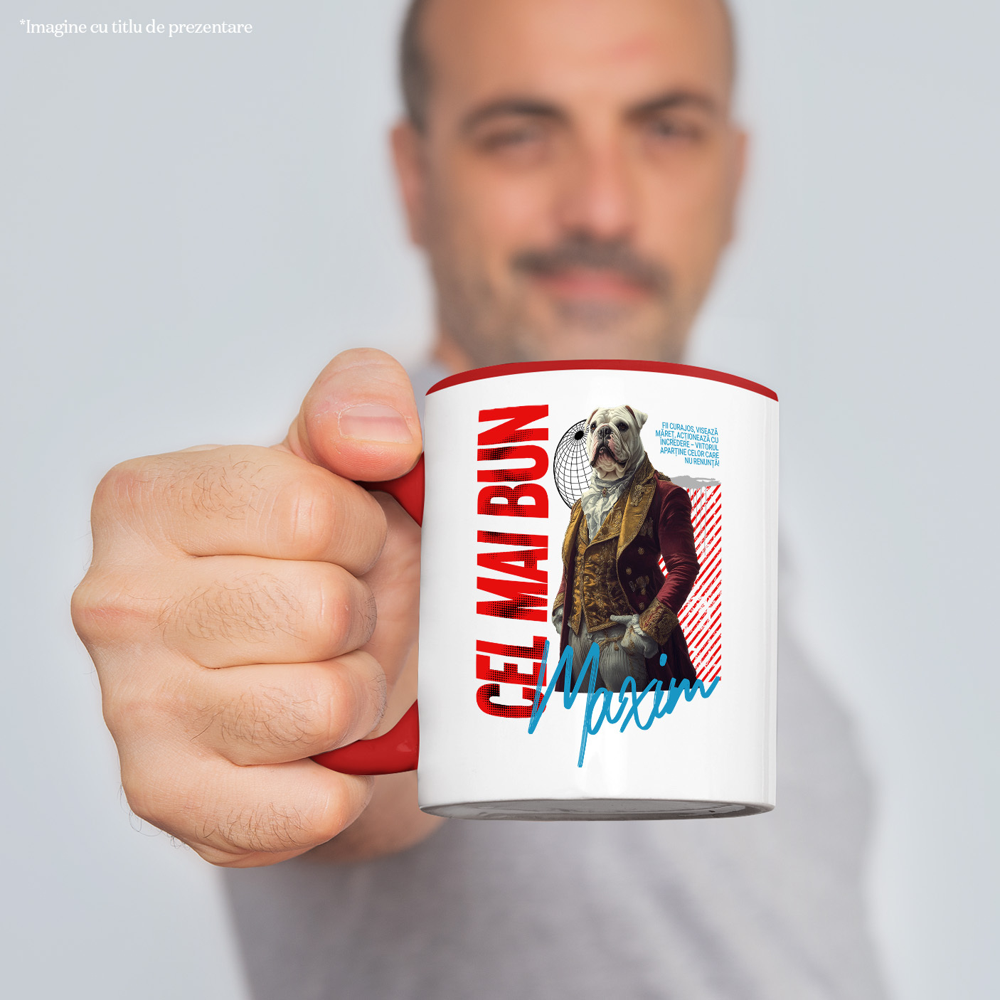 Cana cu Animal In Costum Regal Renascentist, Peronalizata cu Numele si Poza Animalului Tau cu Maner Rosu