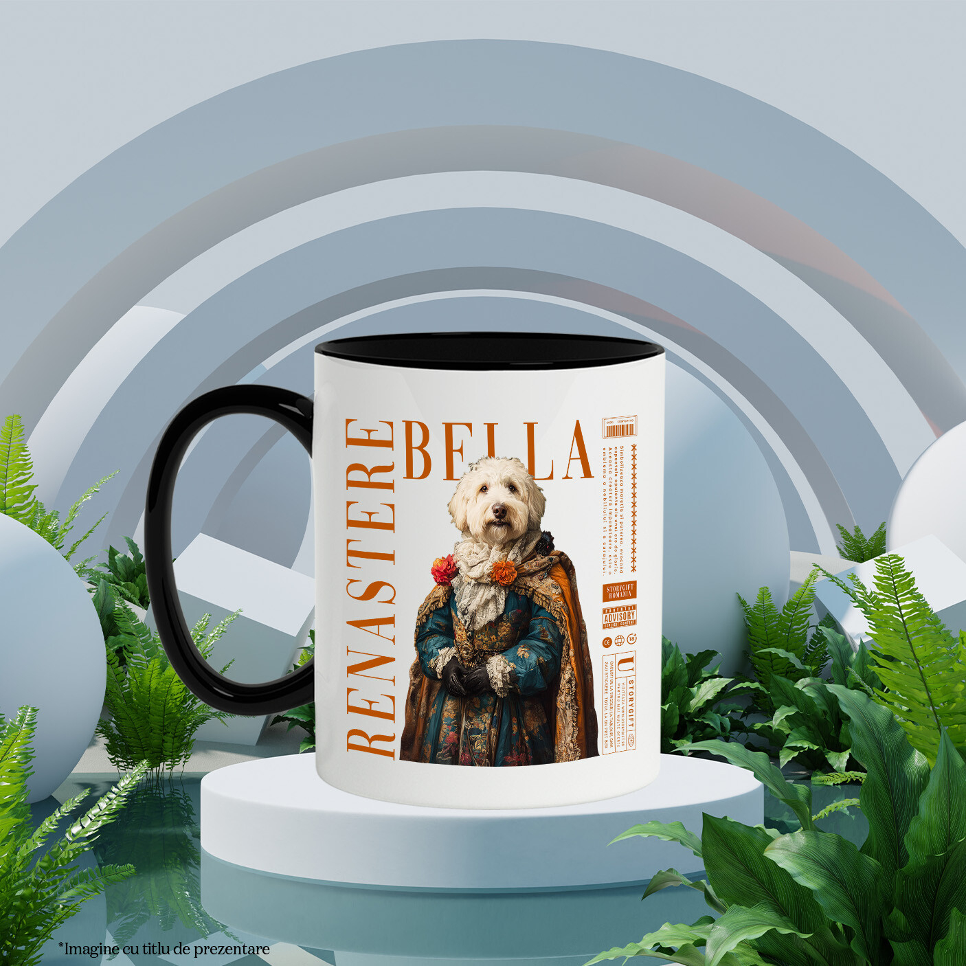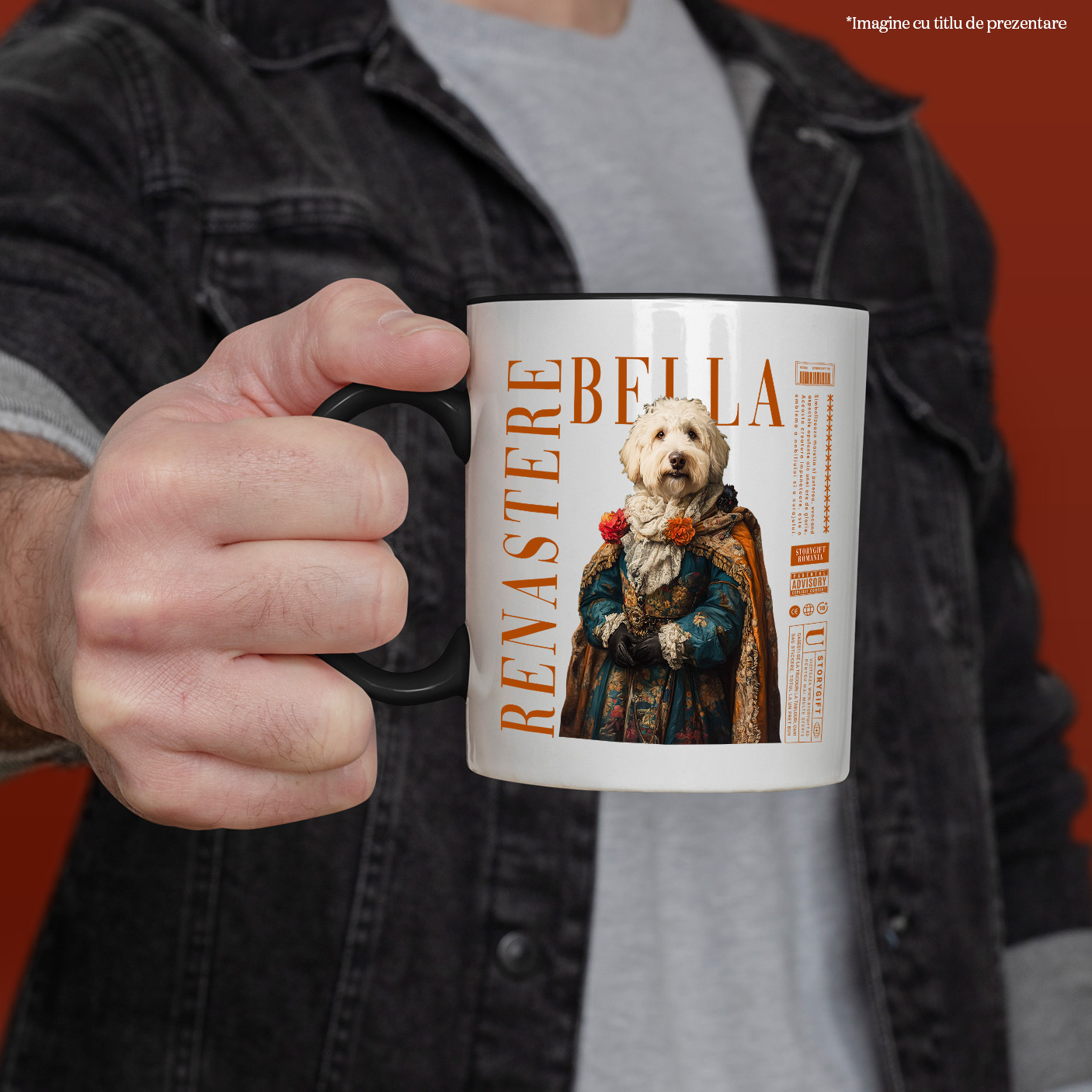Cana cu Animal in Vesmant Regal Renascentist, Peronalizata cu Numele si Poza Animalului Tau cu Maner Negru