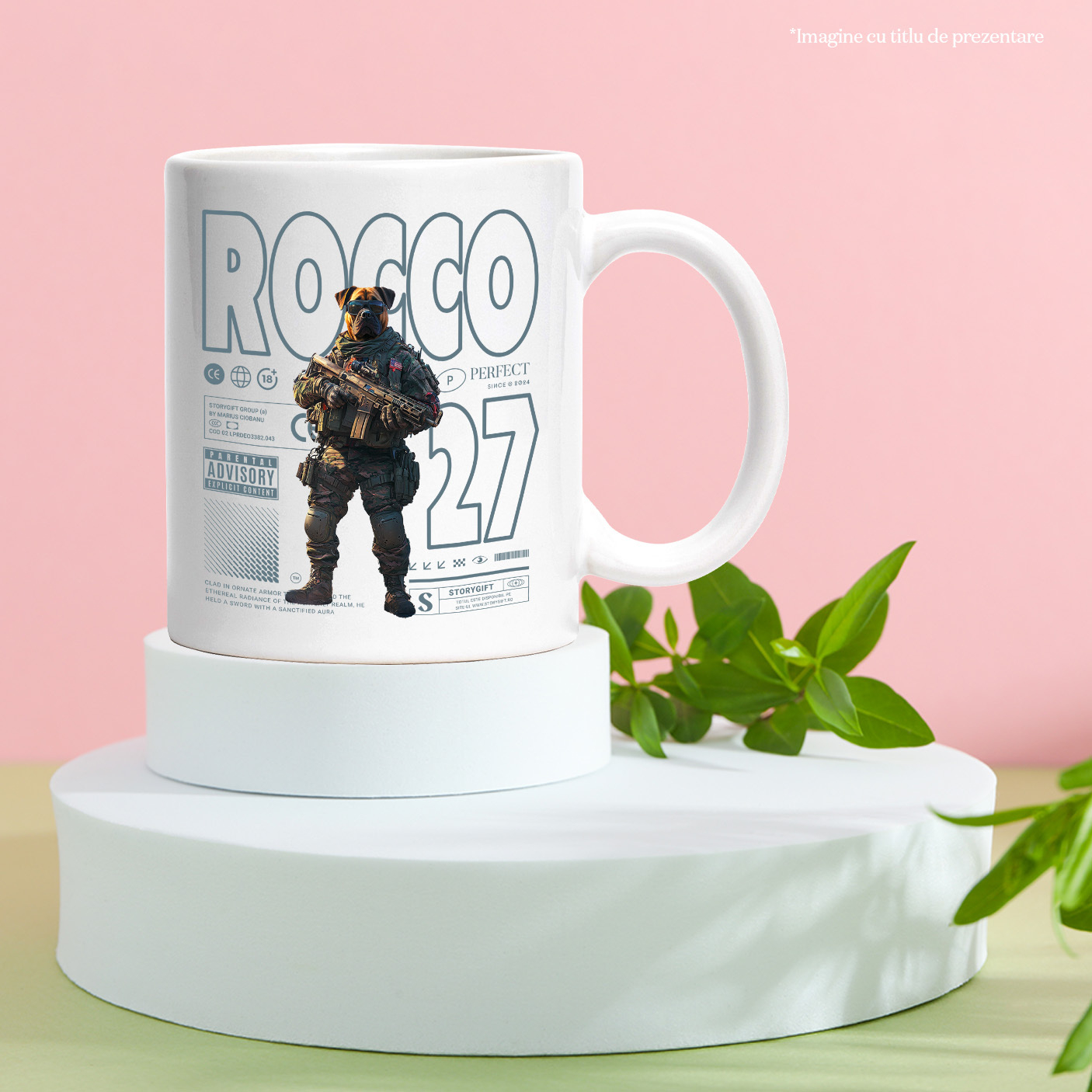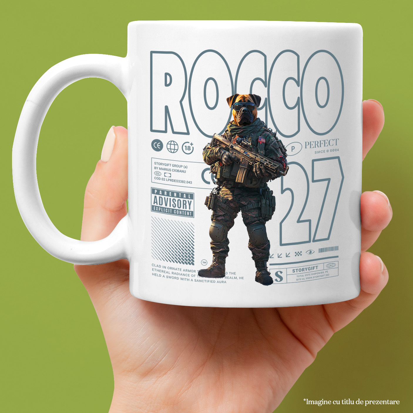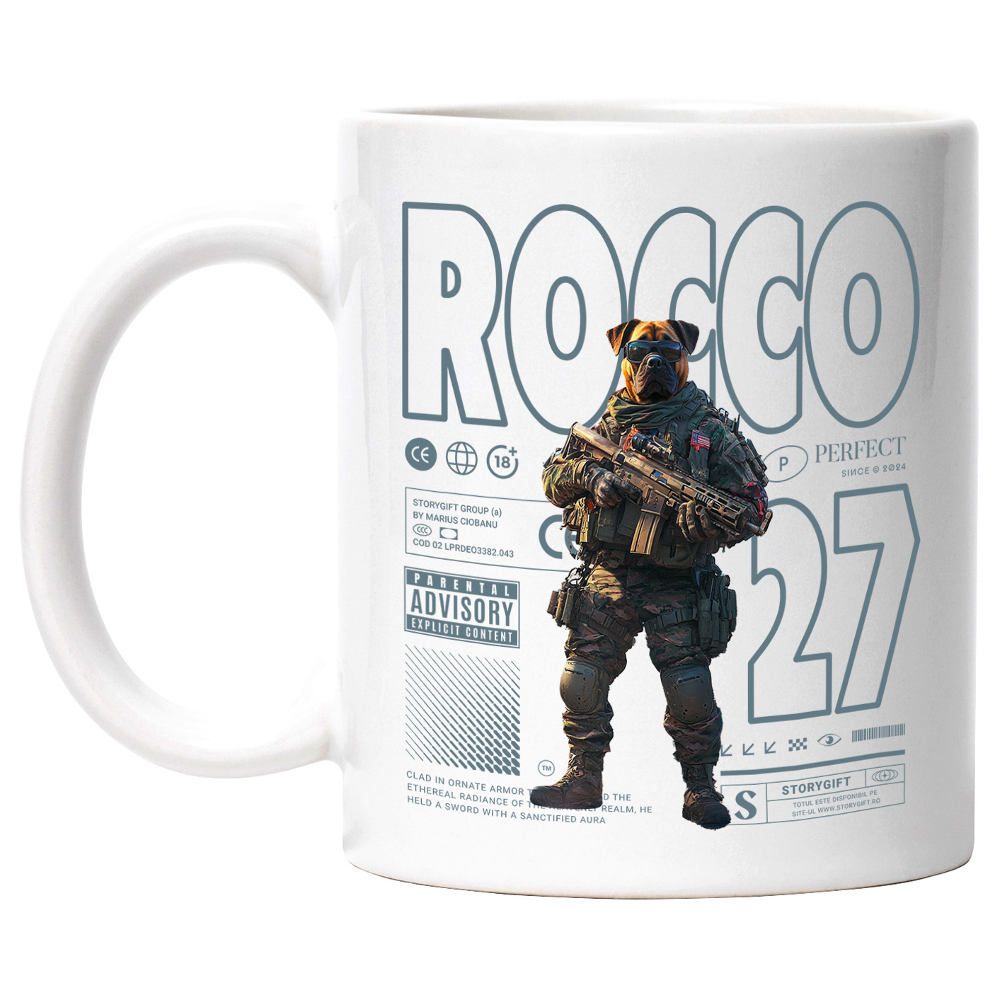 Cana cu Animal Soldat in Armata cu Pusca in Mana, Trupele Speciale, Peronalizata cu Numele si Poza Animalului Tau cu Maner Alb