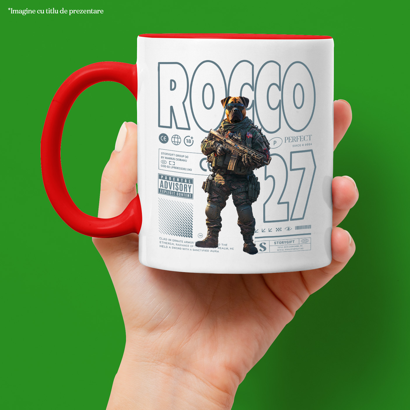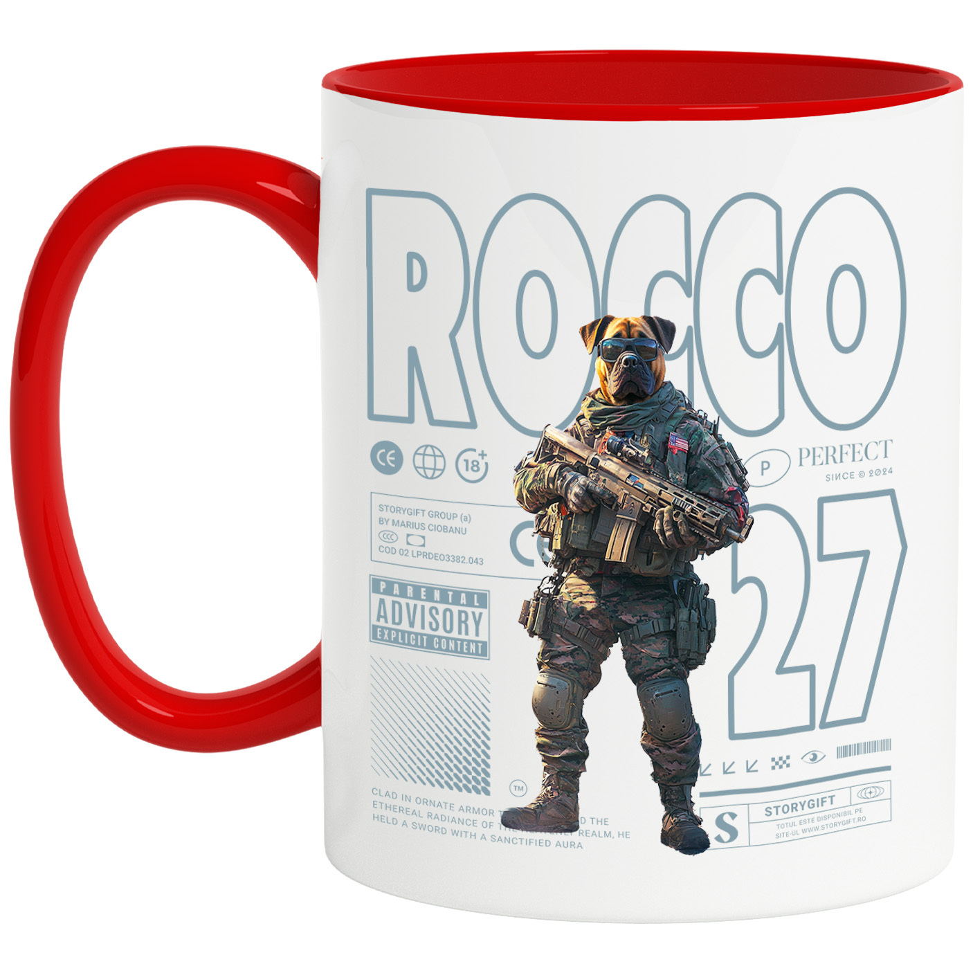 Cana cu Animal Soldat in Armata cu Pusca in Mana, Trupele Speciale, Peronalizata cu Numele si Poza Animalului Tau cu Maner Rosu