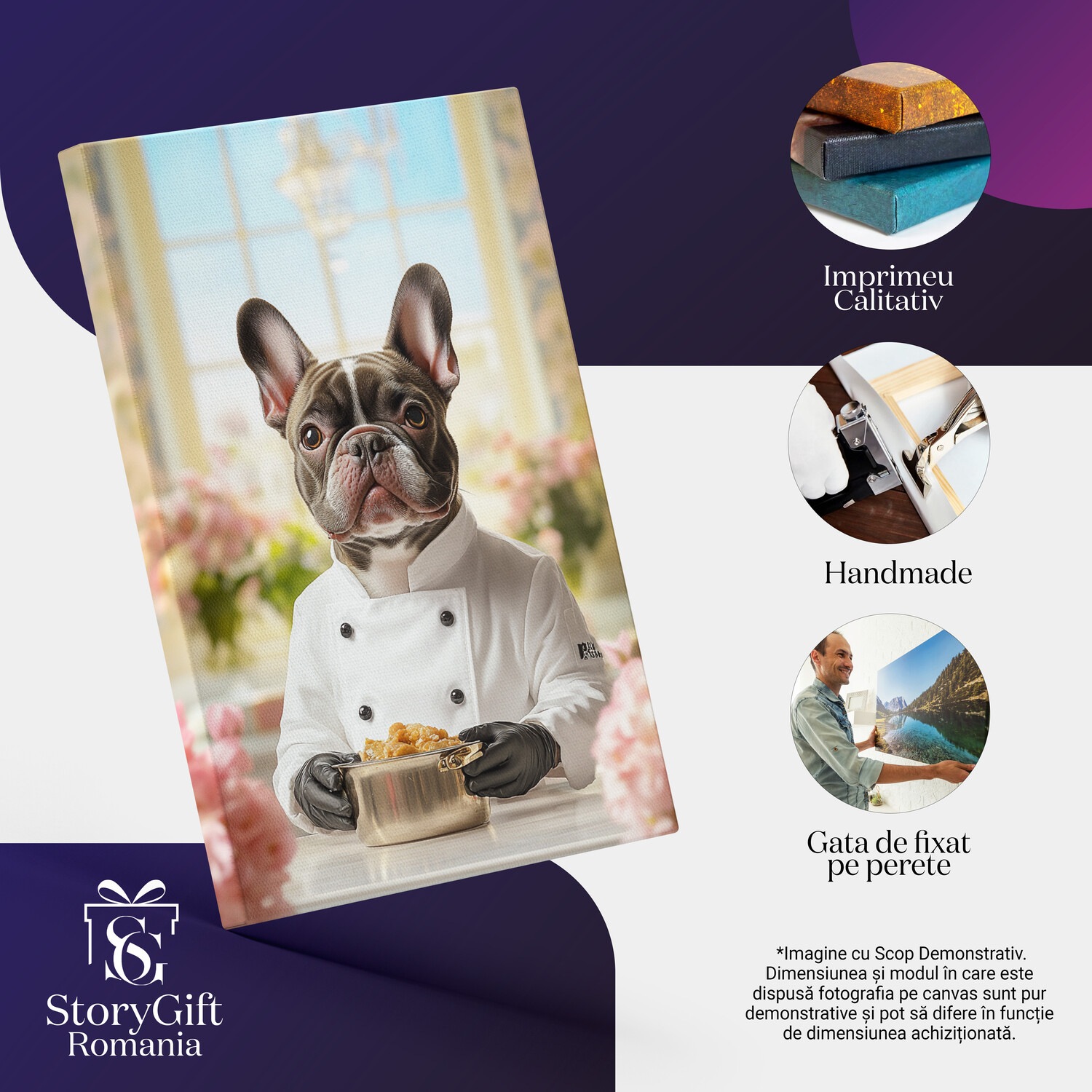 Tablou Canvas Personalizat Bucatar Cheff In Bucatarie Roz, Tinuta Clasica Cu Halat Si Palarie Albe, Meserie 140x90CM
