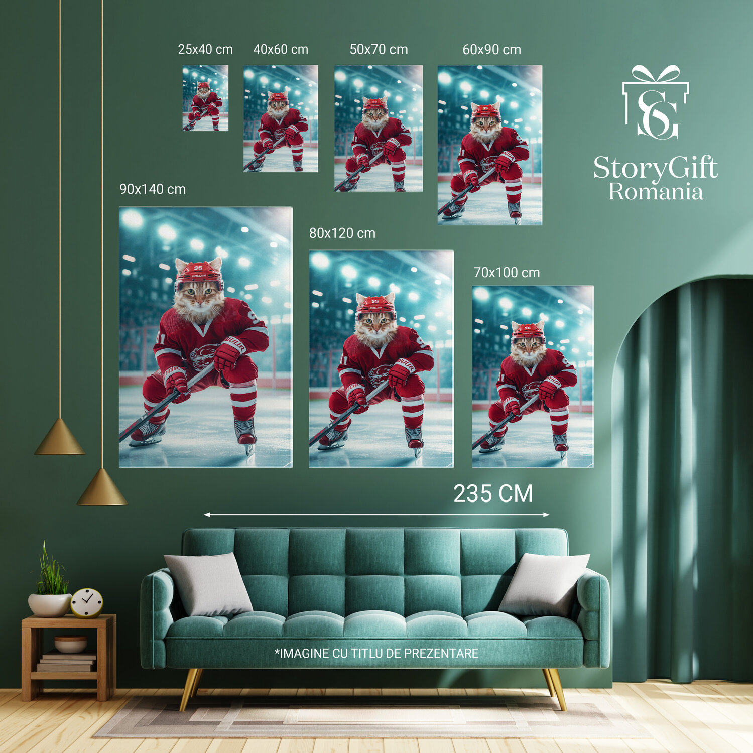 Tablou Canvas Personalizat Jucator de hochei pe gheata, echipament sportiv rosu cu embleme, sport de iarna, activitate fizica 40x25CM