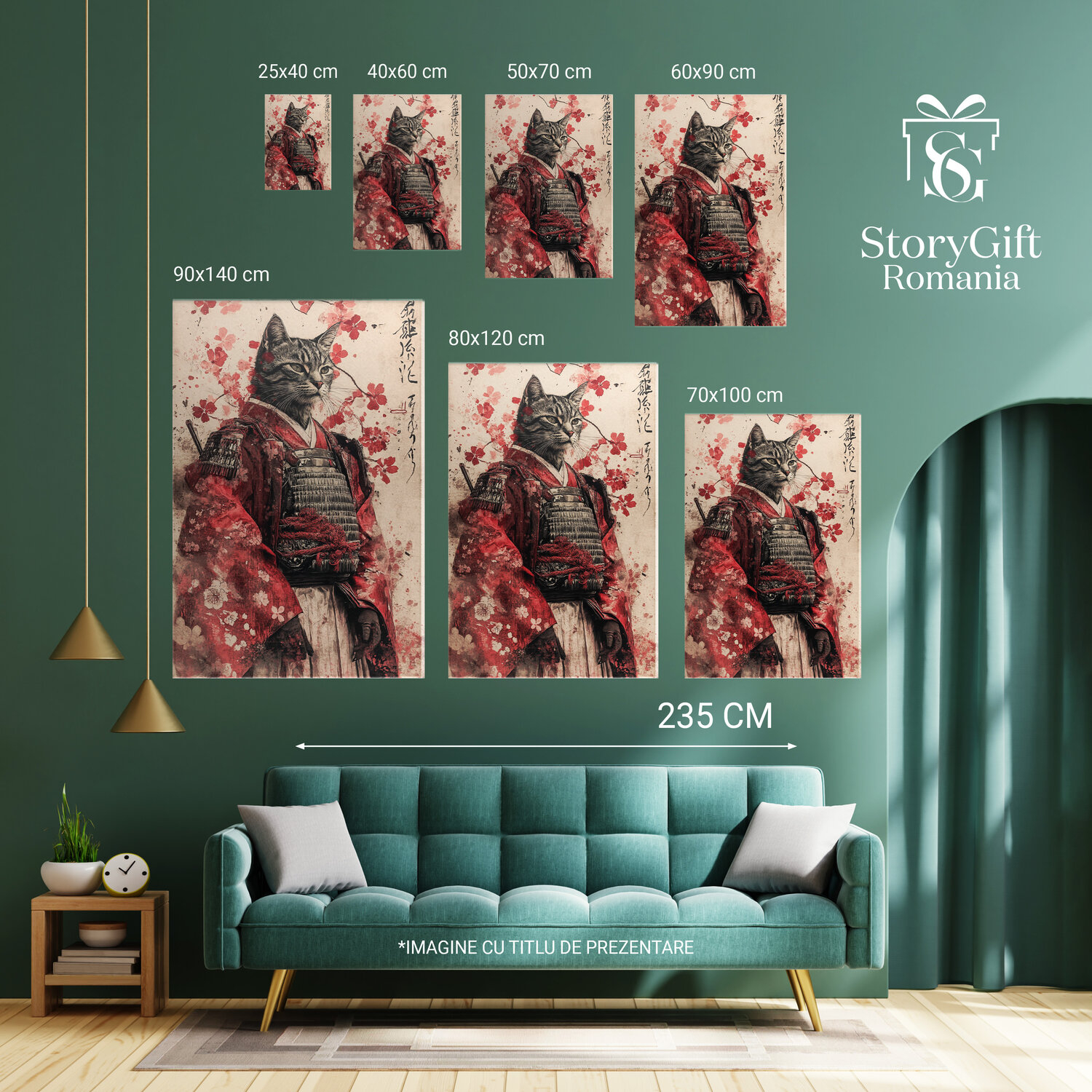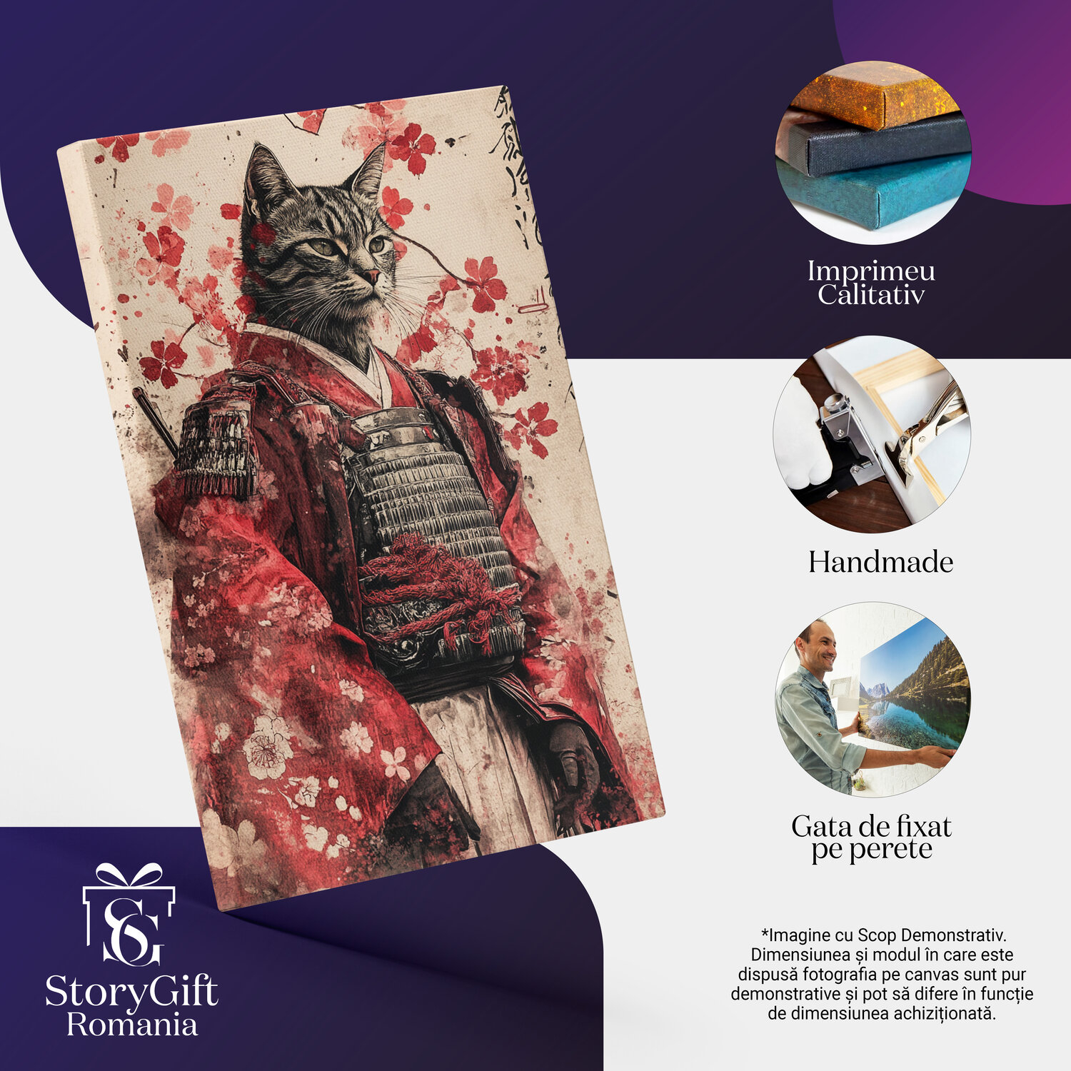 Tablou Canvas Personalizat Razboinic asasin asiatic, arta digitala pictata, cu armura si tinuta traditionala asiatica kimono, 140x90CM