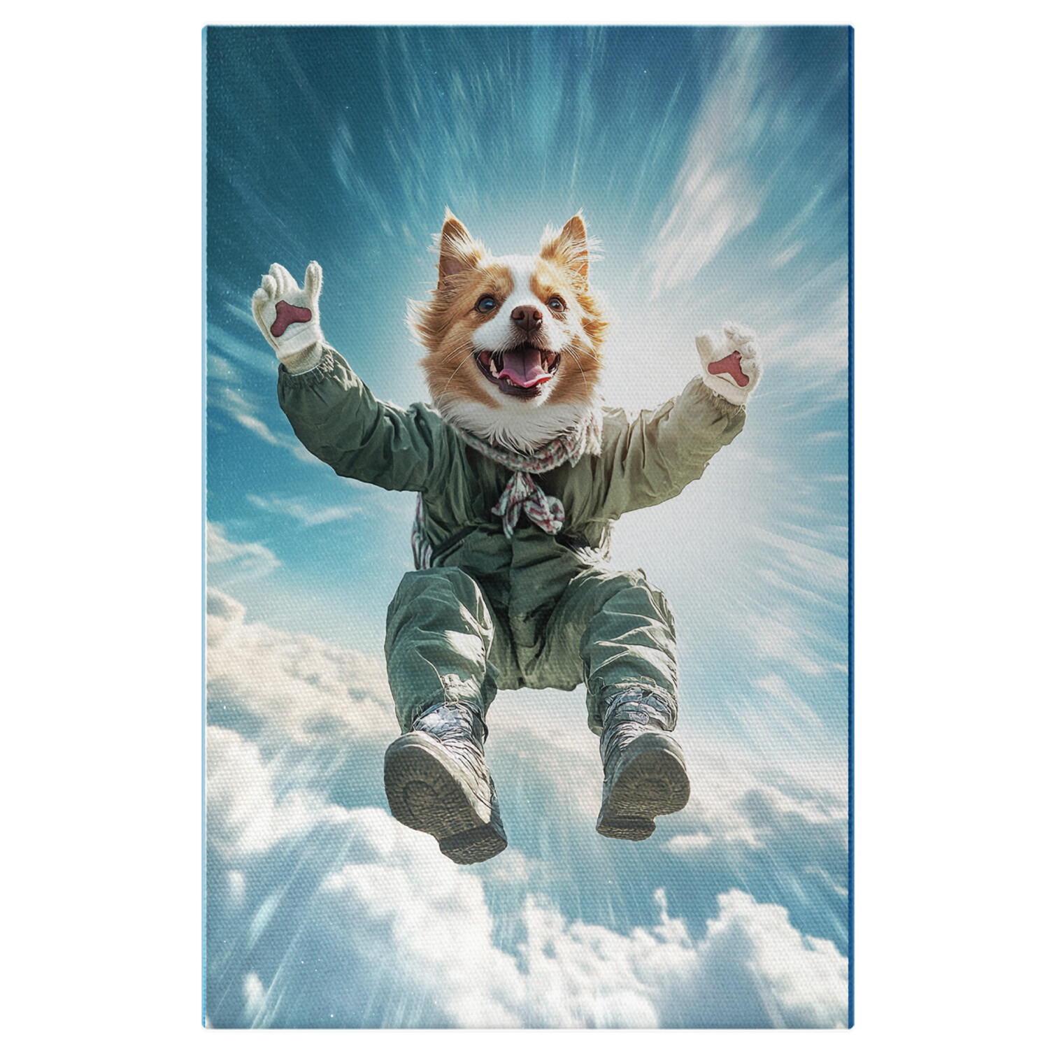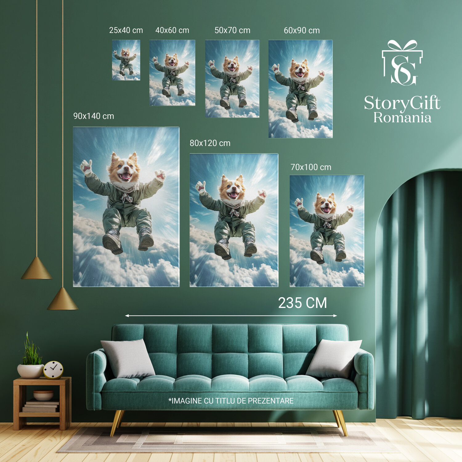 Tablou Canvas Personalizat Saritura Cu Parasute, Cadere In Aer, Salopeta Verde Cu esarfa, Sport extrem, Adrenalina, Distractie 140x90CM