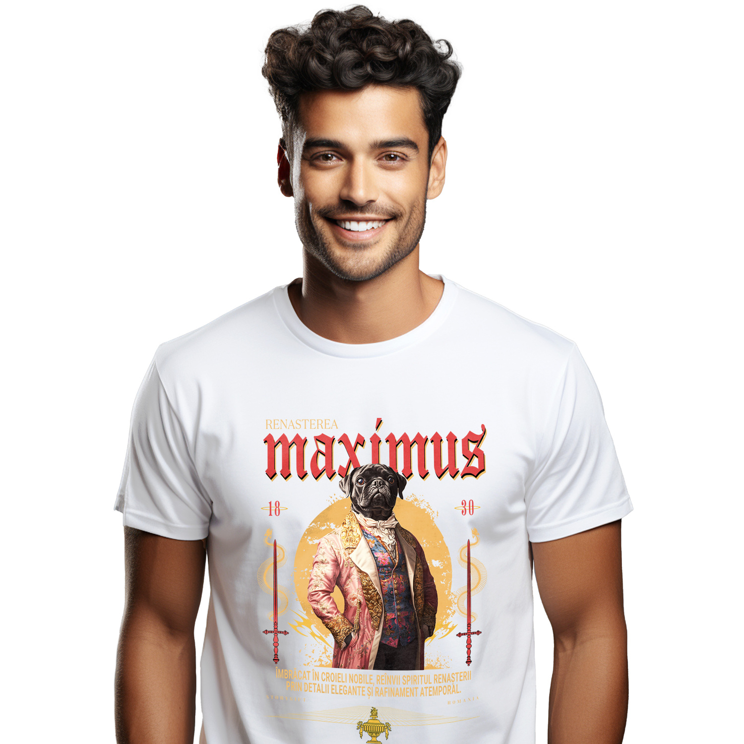 Tricou Barbati cu Animal In Costum Medieval, Portret, Peronalizata cu Numele si Poza Animalului Tau cu imprimeu pe Fata, 100% Bumbac, Alb, XS