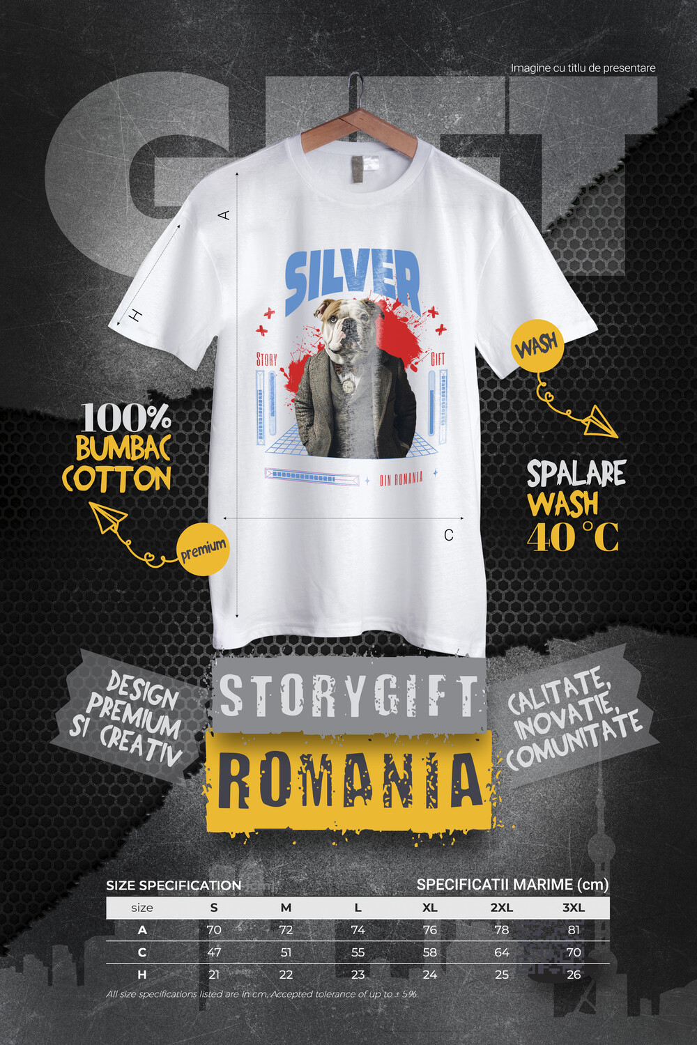 Tricou Barbati cu Animal in Costum si papion, Peronalizata cu Numele si Poza Animalului Tau cu imprimeu pe Fata, 100% Bumbac, Alb, XS