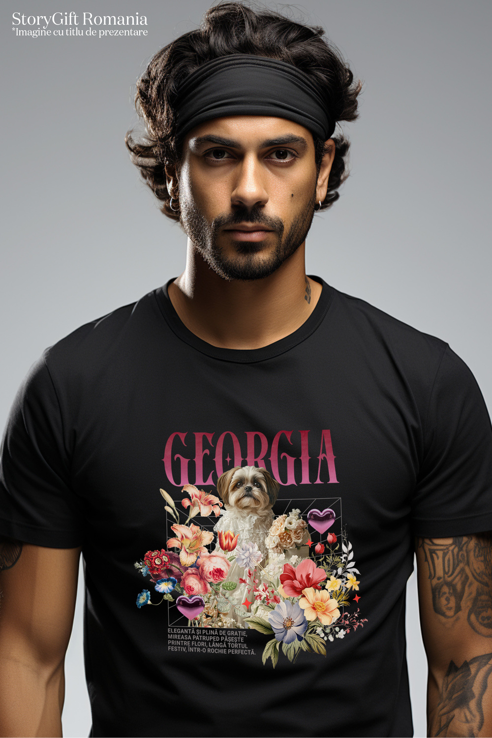 Tricou Barbati cu Animal In Rochie de Mireasa cu Tort, Flori, Peronalizata cu Numele si Poza Animalului Tau cu imprimeu pe Fata, 100% Bumbac, Negru, M