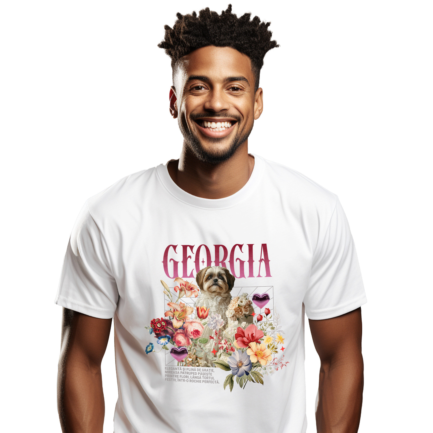 Tricou Barbati cu Animal In Rochie de Mireasa cu Tort, Flori, Peronalizata cu Numele si Poza Animalului Tau cu imprimeu pe Fata, 100% Bumbac, Alb, XS