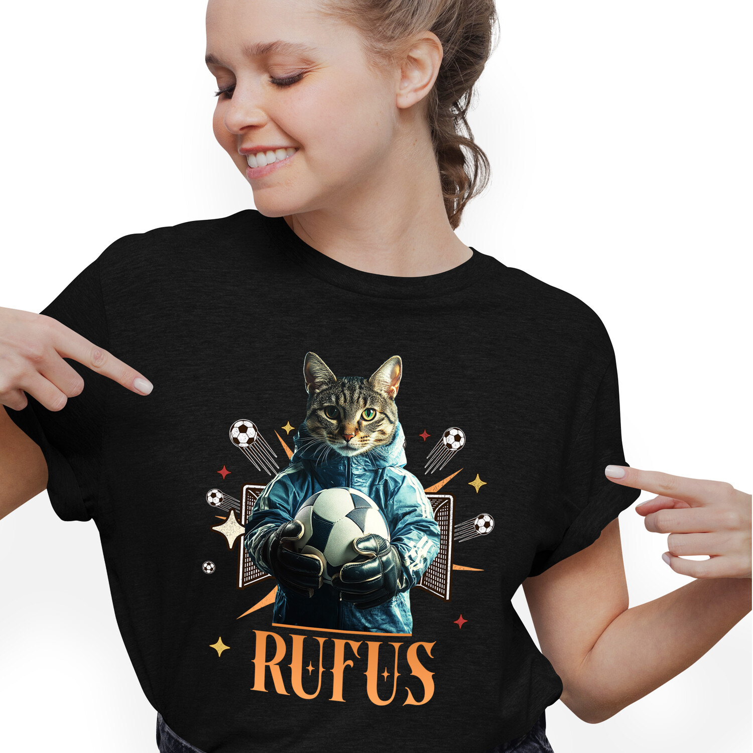 Tricou Femei cu Animal Portar, Fotbal, Joc de Echipa, Peronalizata cu Numele si Poza Animalului Tau cu imprimeu pe Fata, 100% Bumbac, Negru, XS