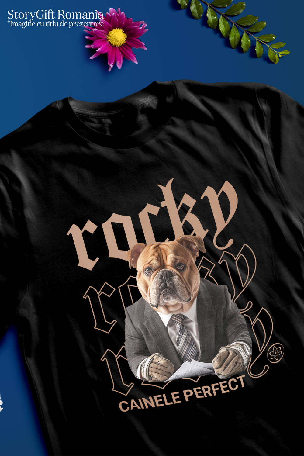 Tricou Copii cu Animal Contabil in Costum, Peronalizata cu Numele si Poza Animalului Tau cu imprimeu pe Fata, 100% Bumbac, Negru, 4 Ani