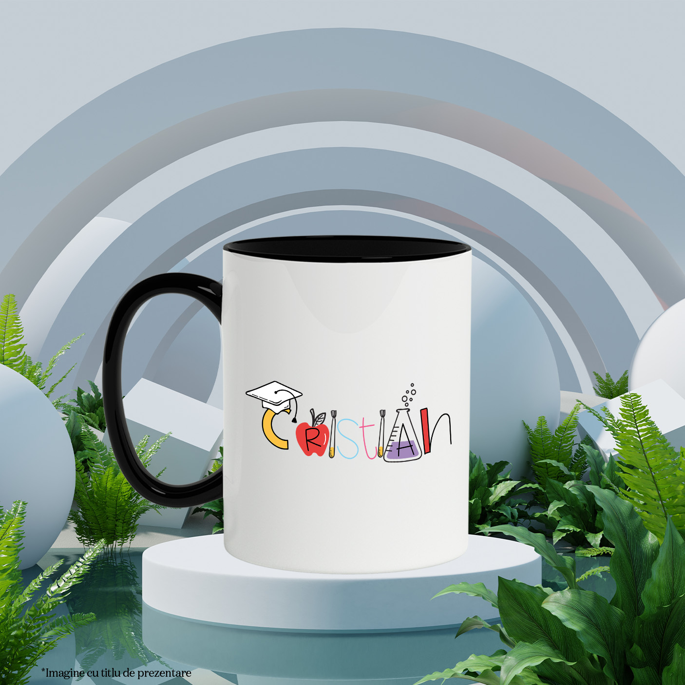 Cana Cu Numele Cristian, si Mesaj Amuzant, Curios, Sociabil, Galagio, 330ml, Ceramica cu Maner Negru