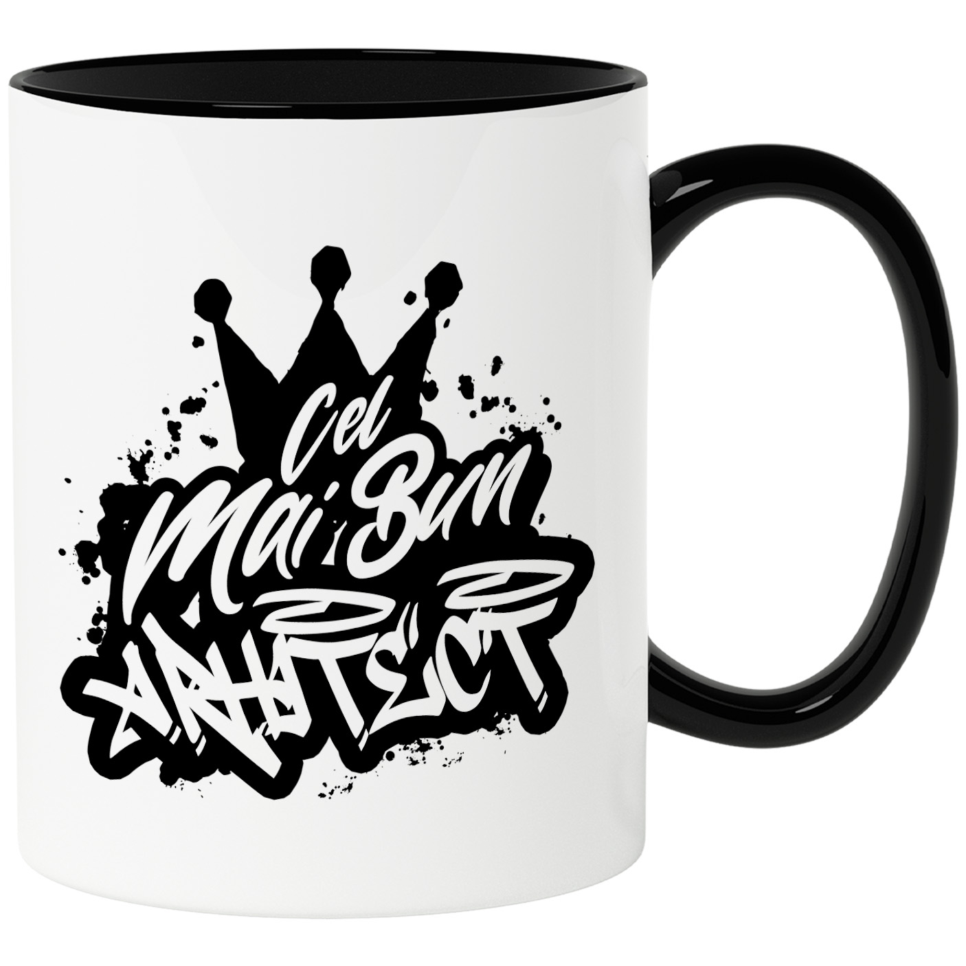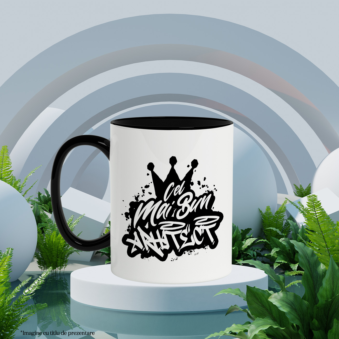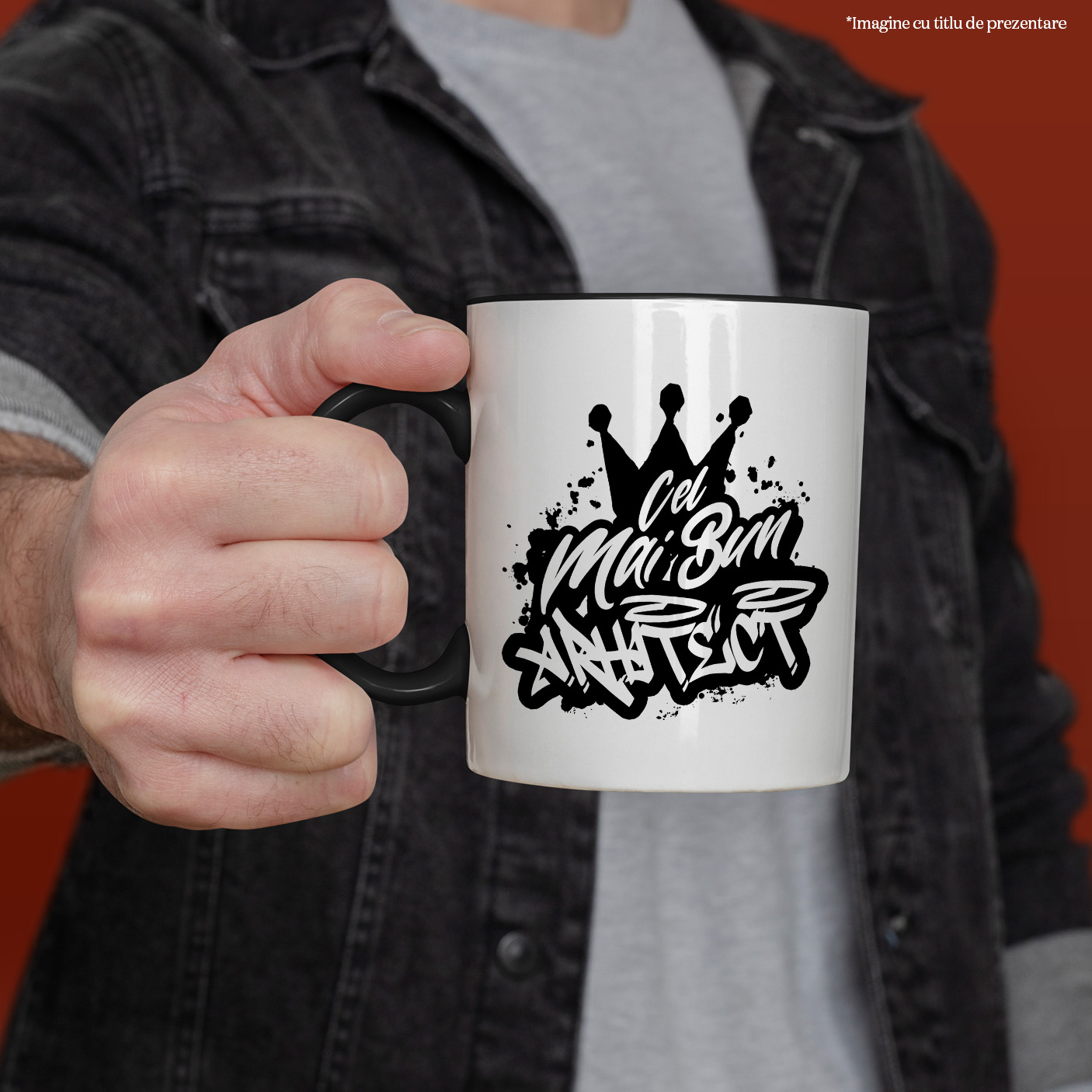 Cana Pentru Cel Mai Bun arhitect, Apreciere, Cadou, Rasplata, Multumire, 330ml, Ceramica cu Maner Negru