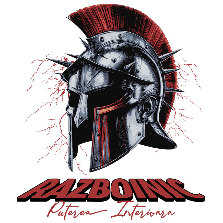 Sticker Personalizat cu Coif De Razboinic Text Puterea Interioara Razboinic Mentalitate cu Margini Albe, PVC Vinyl 10 cm
