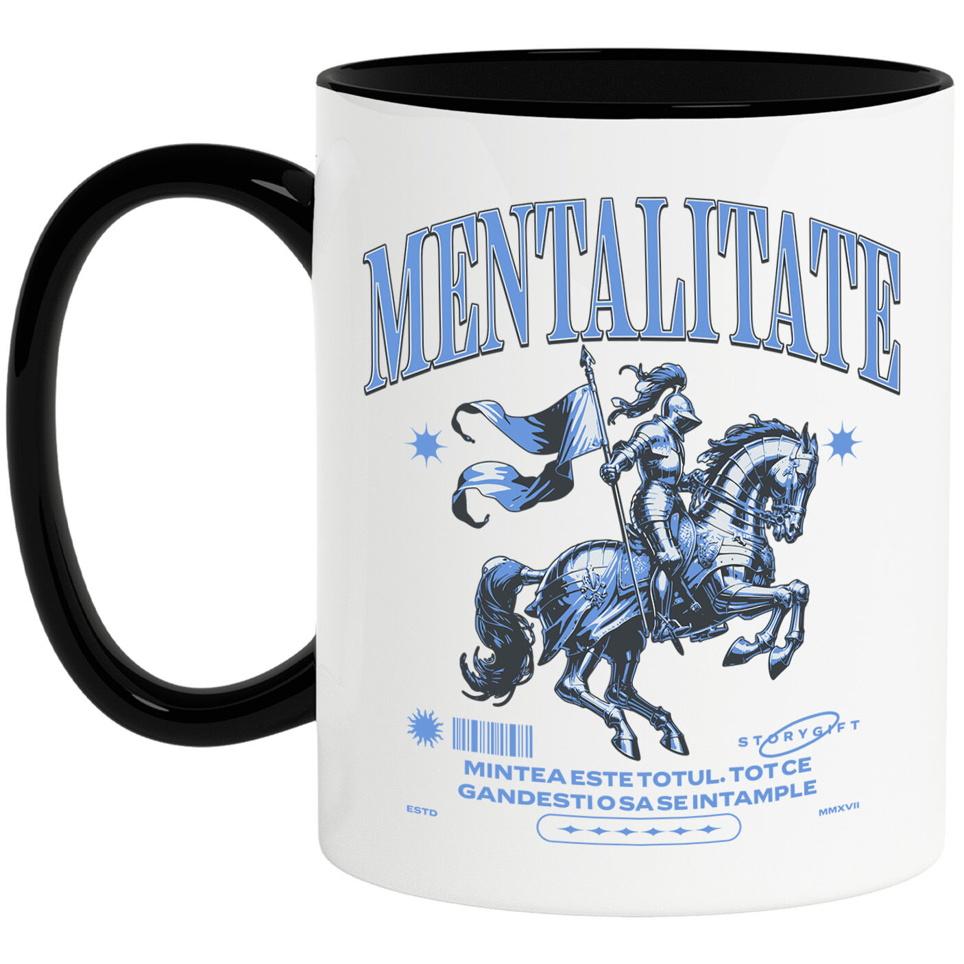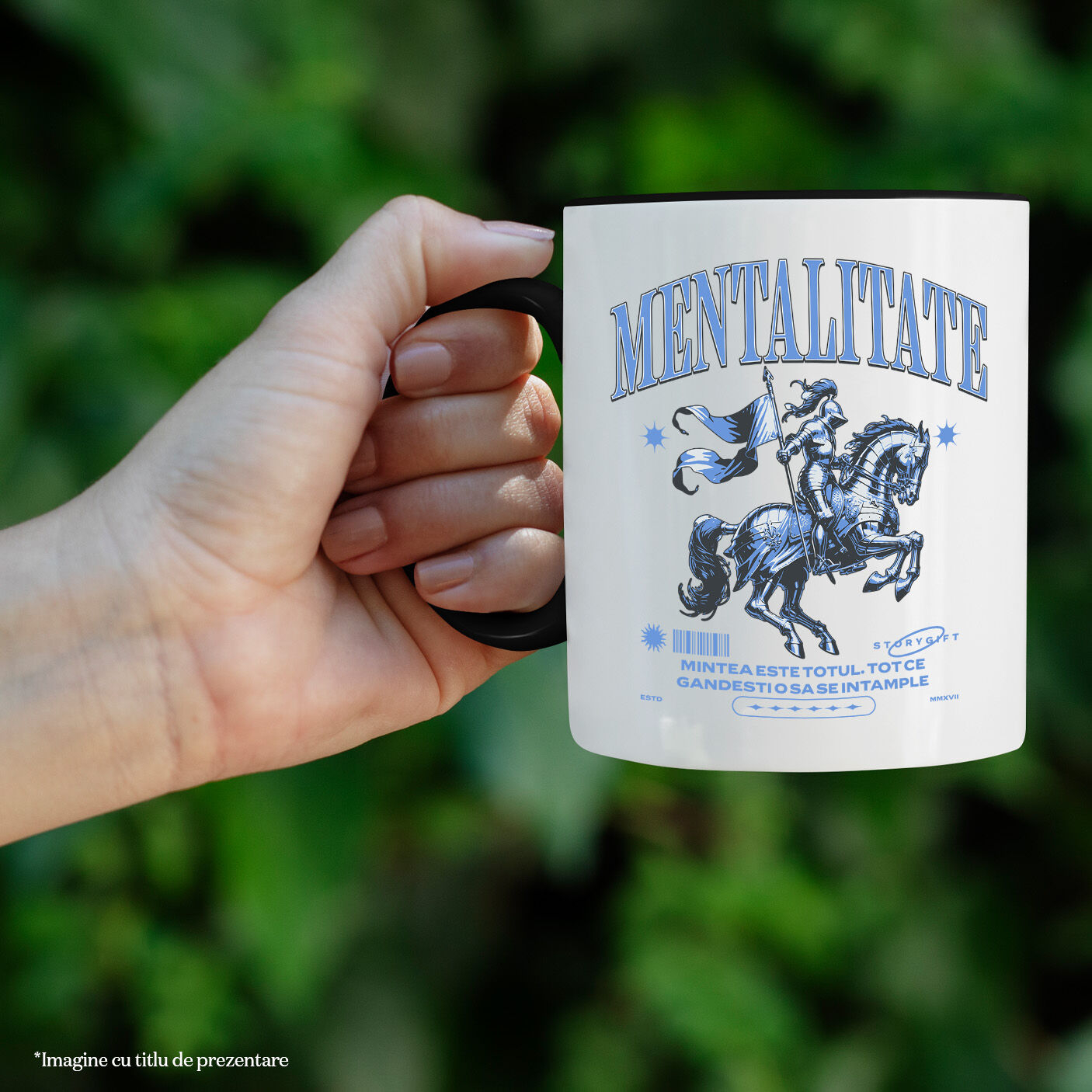 Cana Personalizata cu Cavaler Cu Steag Si armura Calarid Armasar Motivational, Ceramica, 330ML, cu Maner Negru