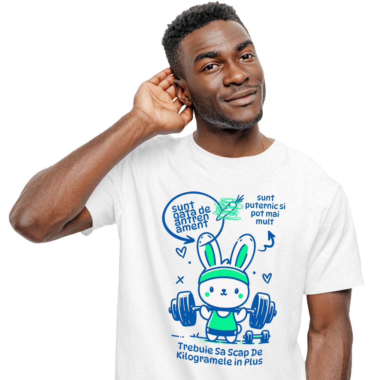 Tricou Barbati cu Iepure Haios La Sala Sportiv Ridicat Bara Greutati Motivational Puternic cu imprimeu pe Fata, 100% Bumbac, Alb, S