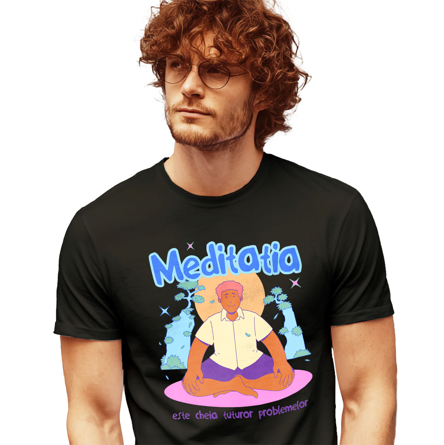 Tricou Barbati cu Iubitorii De Meditatie Barbat In Pozitie De yoga Relaxare Sport cu imprimeu pe Fata, 100% Bumbac, Negru, L