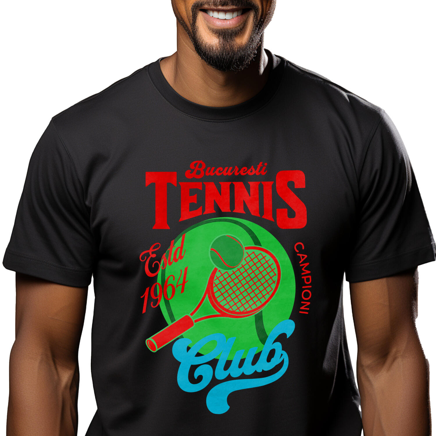 Tricou Barbati cu Iubitorii DE Sport Tennis Racheta Si Minge Campioni Sport Motivational cu imprimeu pe Fata, 100% Bumbac, Negru, L