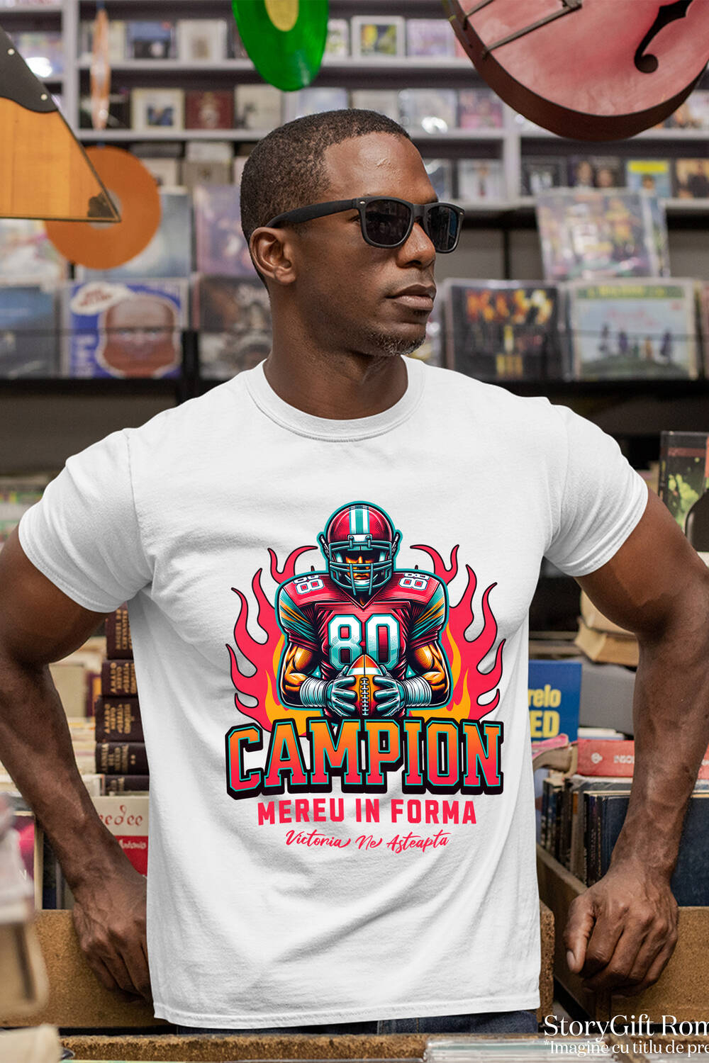 Tricou Barbati cu Jucator De Fotbal American Casca Uniforma Roz Flacari Campion Mereu In Forma cu imprimeu pe Fata, 100% Bumbac, Alb, M