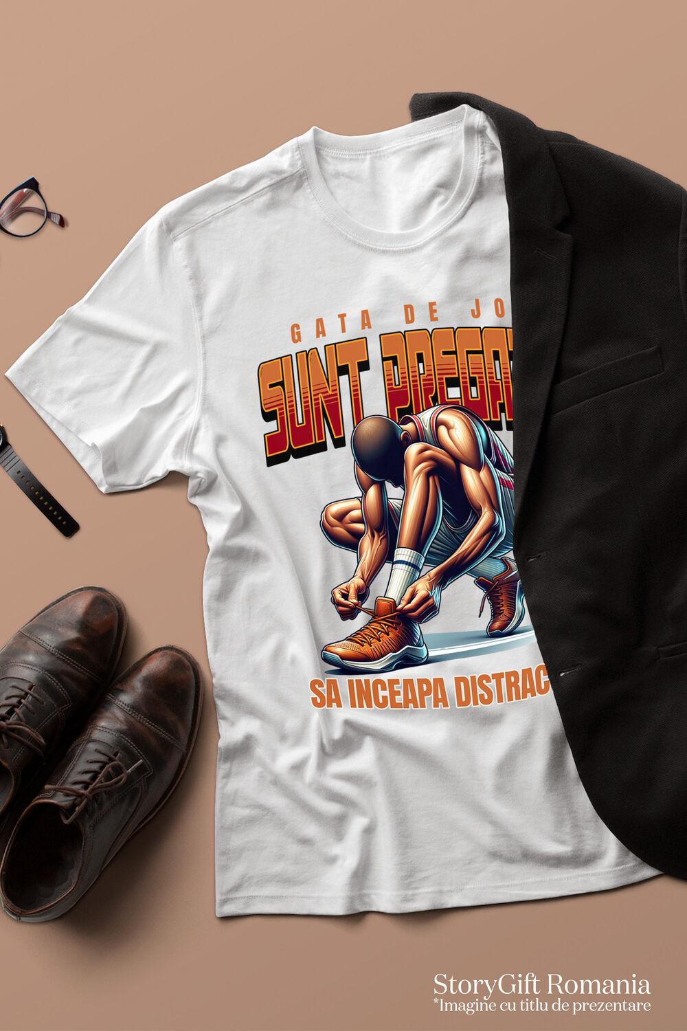 Tricou Barbati cu Jucator Profesionist De Baschet Legare Siret Sport cu imprimeu pe Fata, 100% Bumbac, Alb, M