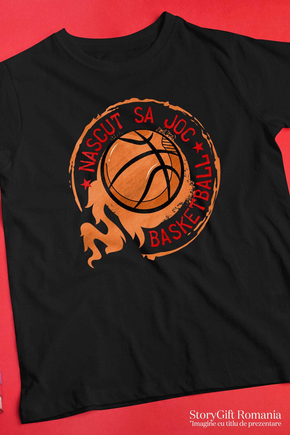Tricou Barbati cu Minge De Basketball In Aer Flacari Sport Sanatate Motivational Nascut Sa Joc cu imprimeu pe Fata, 100% Bumbac, Negru, L
