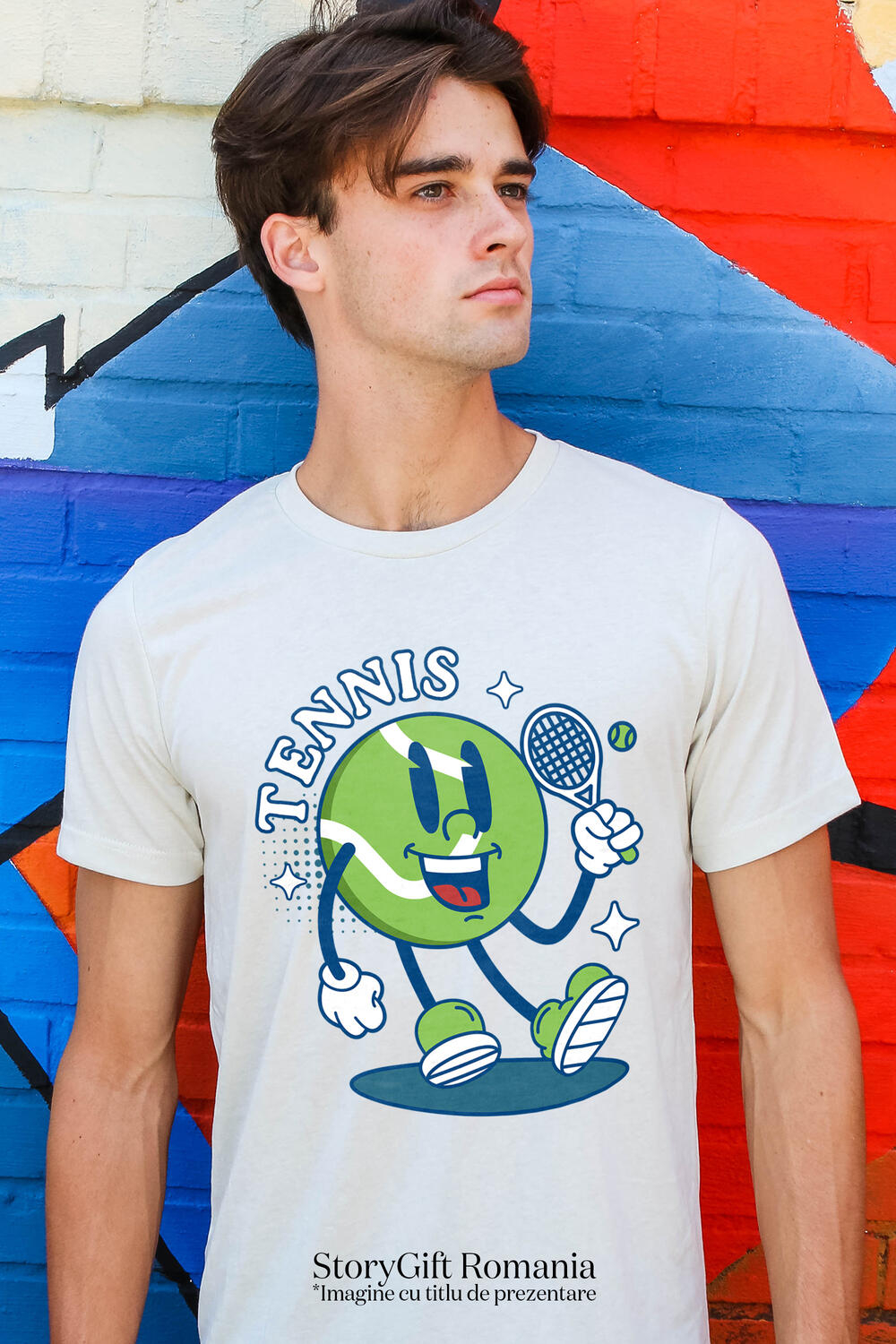 Tricou Barbati cu Minge Tenis Animata Vesela Racheta Sport Sport Sanatate cu imprimeu pe Fata, 100% Bumbac, Alb, L